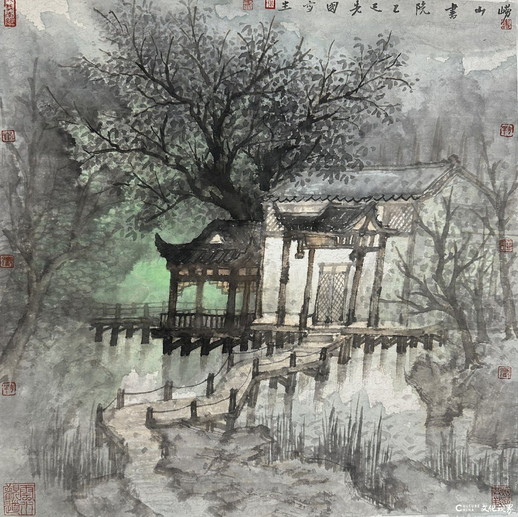 在工业文明与生态危机交织的当下,曾先国的崂山写生展现出强烈的现实关怀。他以“写生即写意”的理念,将自然观察升华为对生态问题的哲学思考——当他以细腻笔触呈现山林的葱茏、溪流的清澈时,实则是以艺术的方式回应着“绿水青山”的时代命题。这种将传统“山水比德”思想与现代生态意识相融合的尝试,为山水画注入了新的精神内涵,使其从书斋雅玩转化为介入现实的文化载体。