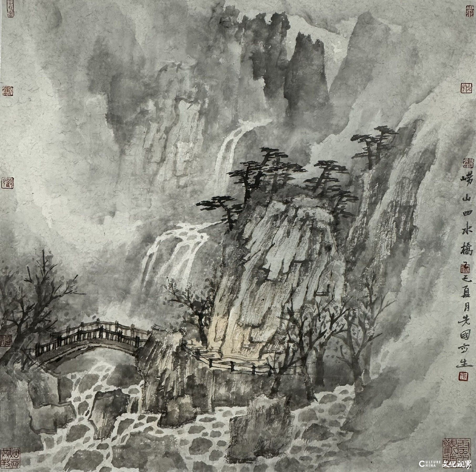 崂山作为道教全真派的发祥地,其文化基因深深嵌入曾先国的创作意识。在他的笔下,山水不再是纯粹的自然景观,而是“道”的具象化表达——云雾的聚散隐喻着宇宙的生生不息,溪流的蜿蜒象征着“上善若水”的哲学智慧,山岩的肌理则暗含着“道法自然”的造物法则。这种文化转译并非符号的简单叠加,而是通过笔墨的虚实关系与空间布局,将道教“天人合一”的宇宙观渗透于画面的每个细节。他以散点透视构建的山水空间,使观者得以在“游目骋怀”中完成对“道”的体悟,实现了从地理空间到精神空间的跨越。