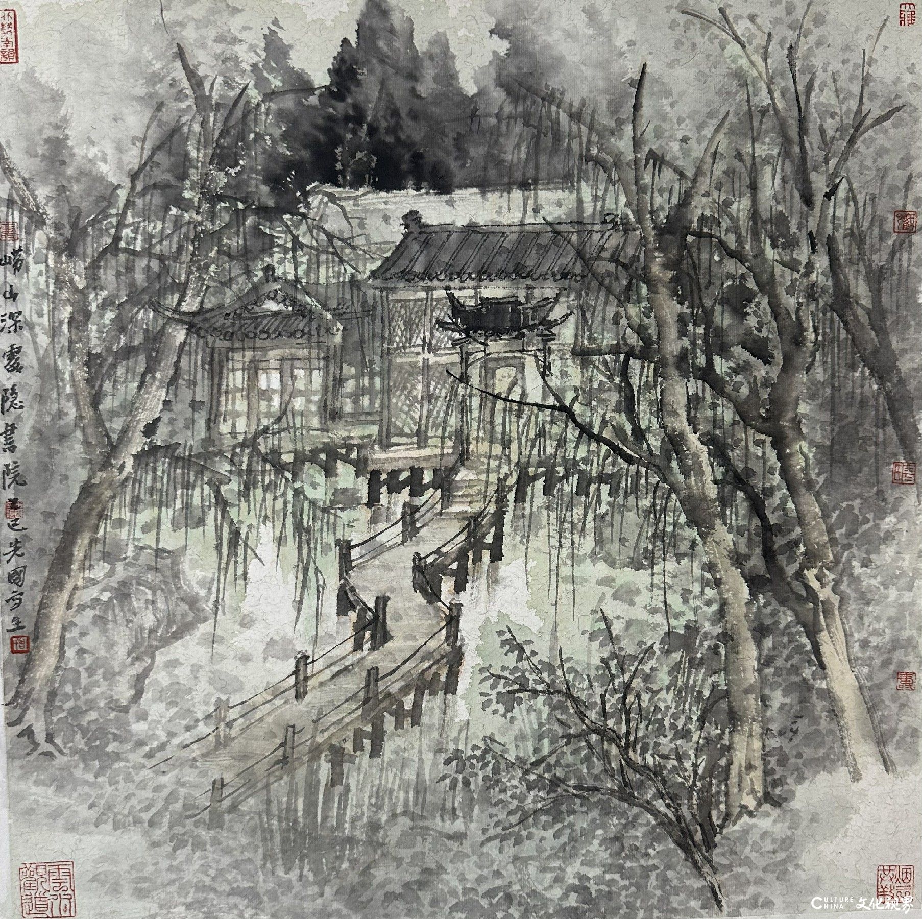 在工具与材料的选择上,他坚持以传统笔墨直面自然,摒弃硬笔速写的中介化处理,使宣纸成为自然气息与精神感悟的双重载体。这种“笔墨先行”的实践,让崂山的地域性特征——如山海交汇的磅礴气象、道教文化的氤氲氛围——直接渗透于画面肌理。他笔下的山水空间,既非西方透视法中的三维再现,亦非传统程式中的符号堆砌,而是通过“虚实相生”的笔墨哲学,构建起“可行、可望、可游、可居”的精神场域,实现了从自然物象到文化意象的创造性转化。