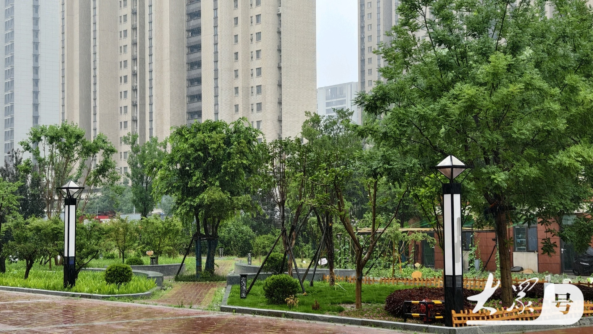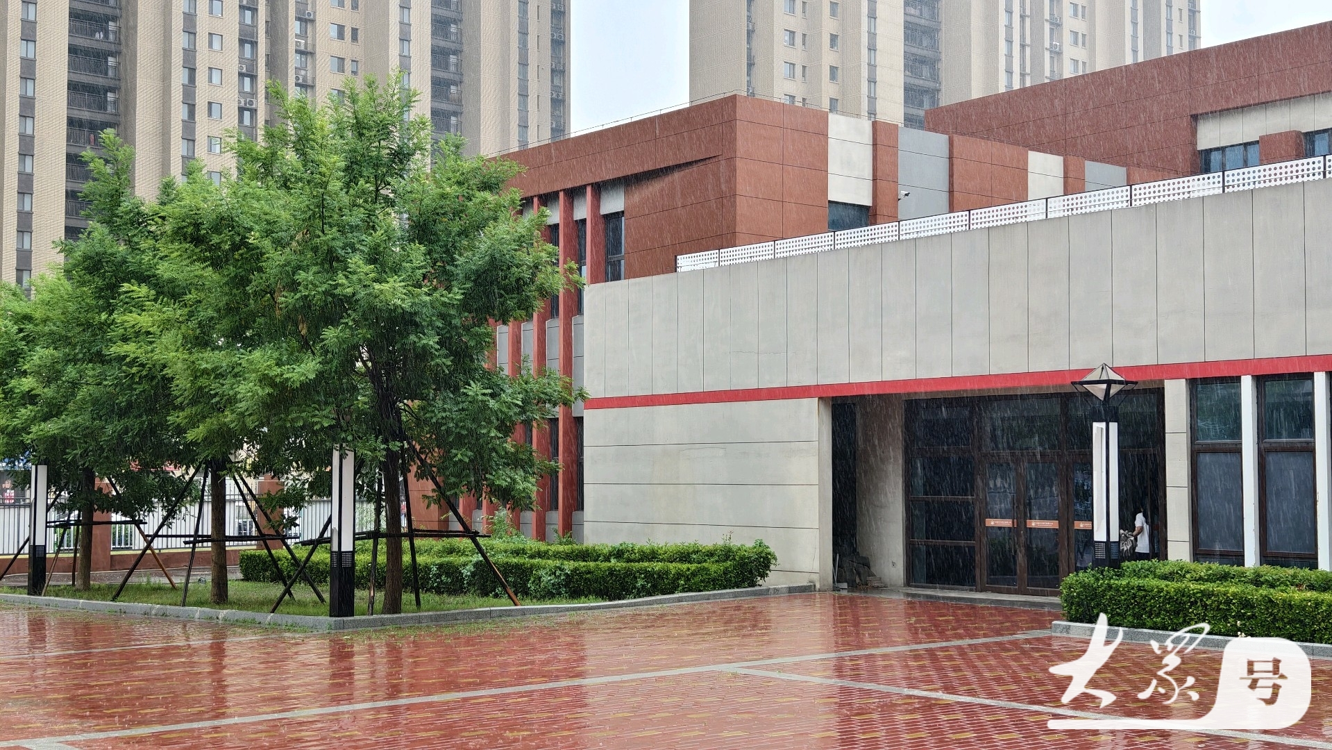 雨中的枫景小学,诗意与生机并存