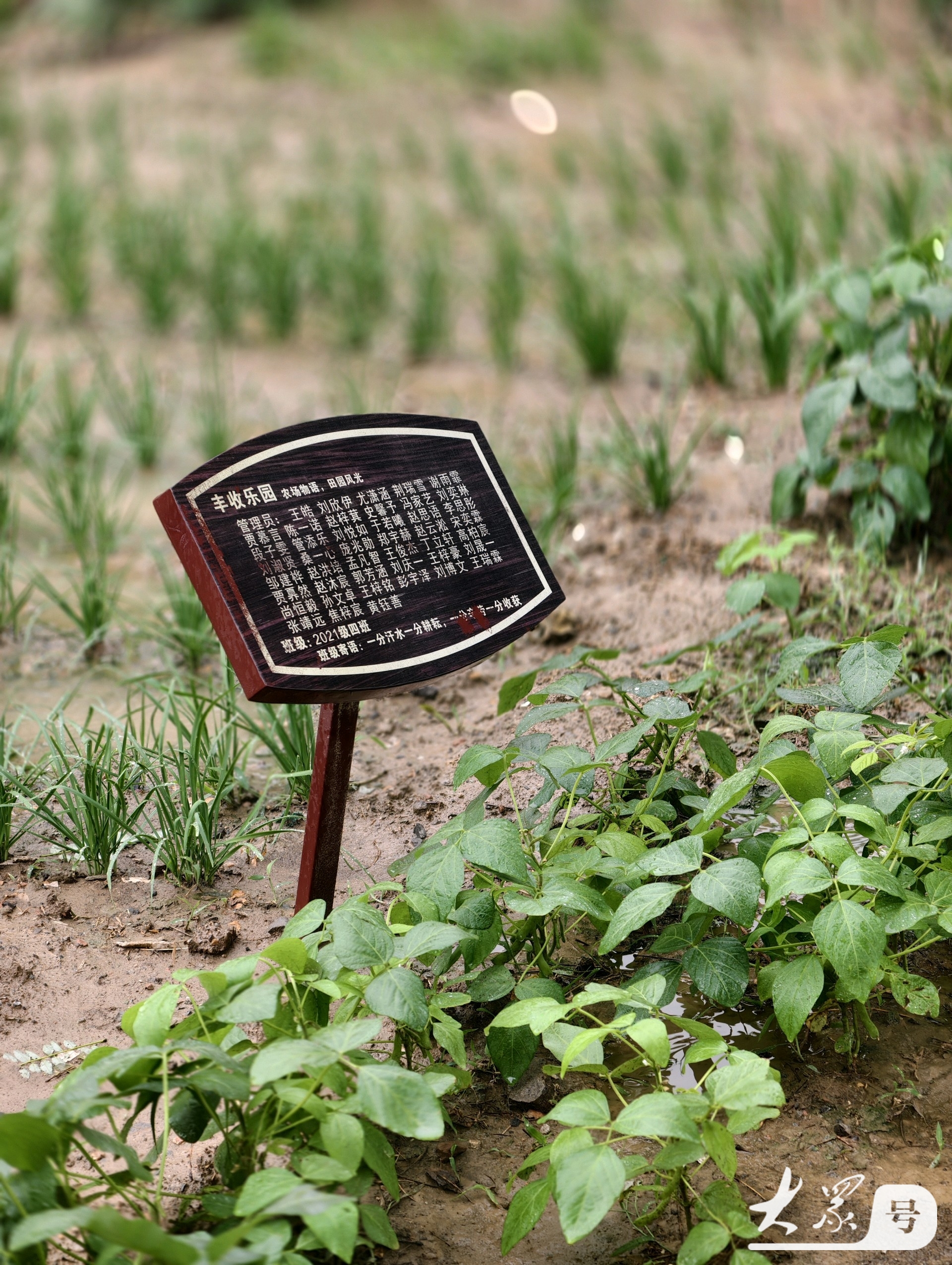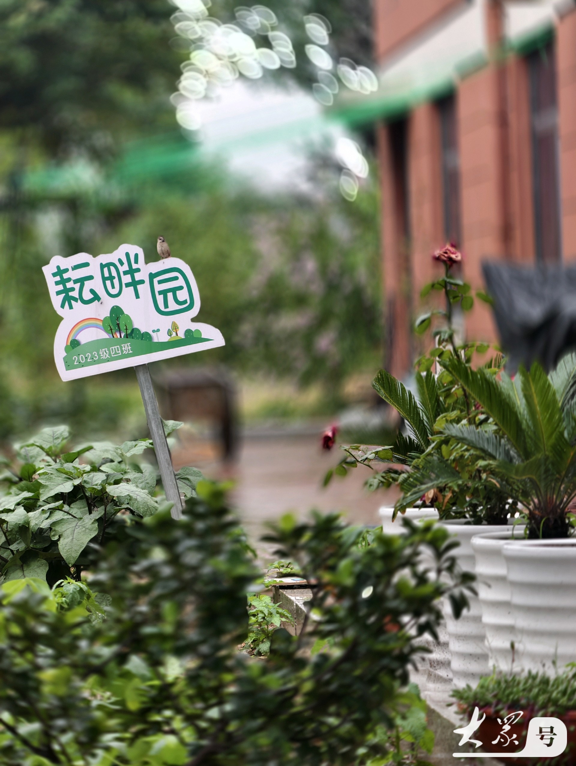 最引人注目的当属学生们的农耕园。雨滴洒落在园中的蔬菜和农作物上,让它们焕发出勃勃生机。