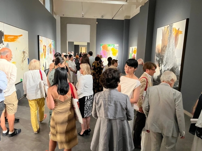 策展人西蒙吉尼指出,王衍成的画作既汲取了中国山水画的精神性,也吸收了欧美抽象绘画的实验传统,更融合了现代科学,尤其是量子物理与宇宙观的启发。他的创作“如同一场视觉冥想”,通过色彩的叠加、肌理的构建与空间的延展,引导观者进入一场沉浸式的精神体验。