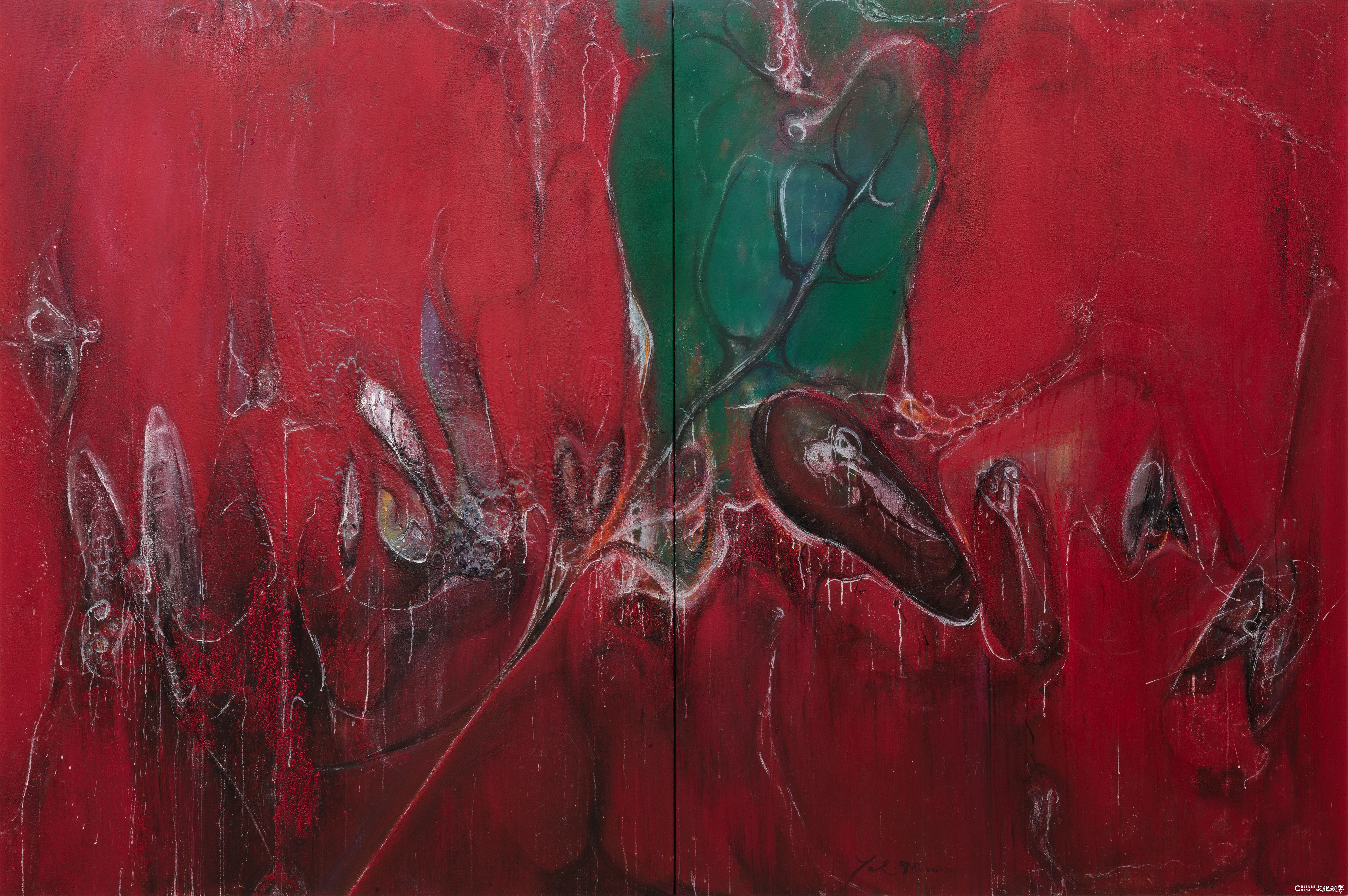 正如他所言,艺术的发动是 “个体生命追问的自我溯源”,那些在画布上流淌的线条与色块,实则是艺术家对 “我从哪里来” 的视觉应答。这种处理并非对自然的背离,而是通过艺术的神秘性,让“万物有灵”的原始信仰在当代语境中重生。