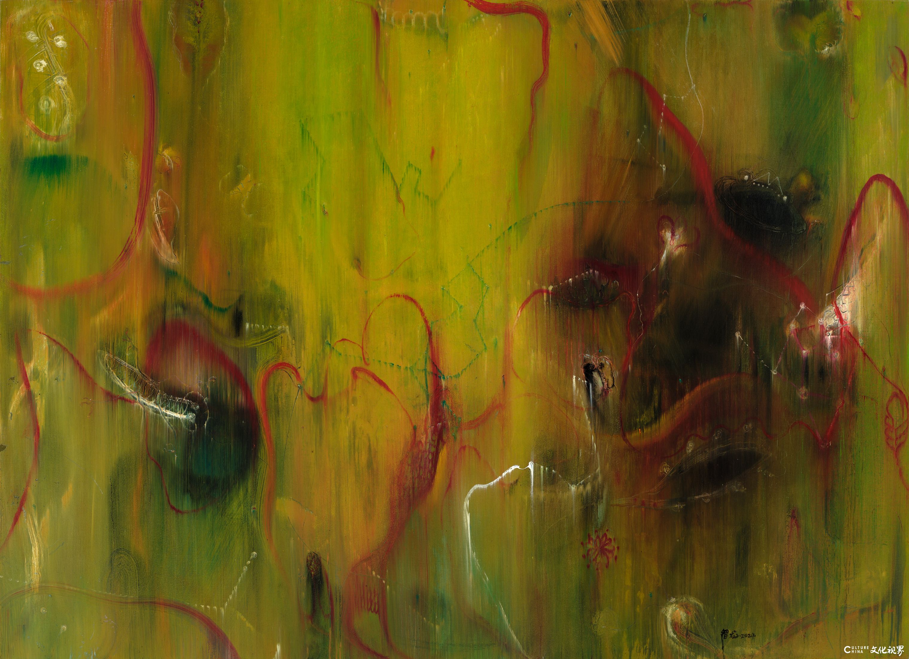 严智龙的艺术观建立在对“心像”的深刻认知之上——人类试图还原现实或逼近自然之像的过程,本质上是在构建一个介于二者之间的“非现实场域”。《莫名的世界》系列作品中,那些似是而非的图式与氤氲的色彩氛围,消解了现实物象的确定性,却在模糊的边界中显影出潜意识的悸动。这种创作逻辑呼应着他对艺术本质的判断:“艺术呈现其中,并隐匿了来源”,观众若执着于在画面中寻找“现实的影子”,便会忽视作品中“人的存在”与“意志的自由觉醒”。