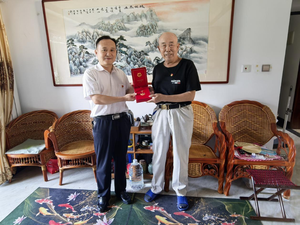 在“七一”前夕,队党委专职副书记吕洪魁,党委委员、副队长刘涛受队党委委托,分别前往丁长欣、王立平、陈新生三位老党员家中,为他们庄重佩戴“光荣在党50年”纪念章,并转达党组织的关怀与问候。