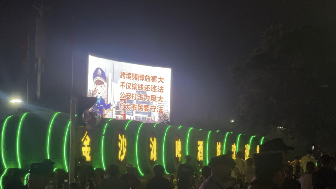 青岛市公安局严格落实上级部署,在常规宣传教育基础上,充分利用大型活动及各类屏幕,常态化开展打击治理跨境赌博宣传工作。近日,借演唱会、青岛啤酒节等大型活动之机,市公安局精准发力,在活动现场开展宣传教育,通过播放生动形象的短视频,让现场广大歌迷、游客深刻认识到:跨境赌博危害极大,需自觉远离、严守法律,共同抵制并积极提醒身边人,方能守护幸福生活。