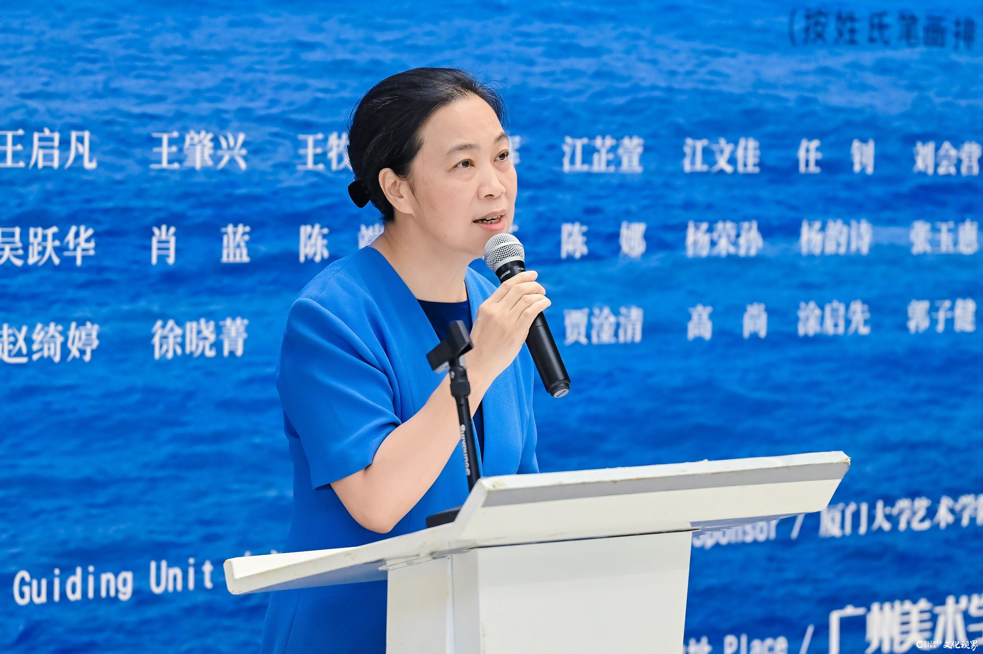 中国美术家协会副主席林蓝在致辞中欢迎各方来宾并肯定此展览对两岸暨港澳青年艺术家多元创作及家国情怀的呈现;她表示广州美术学院将以开放创新姿态推进“湾区艺术创新系统”建设,期待借展览深化与厦门大学、众多艺术同行的交流合作,助力文化繁荣与共进。