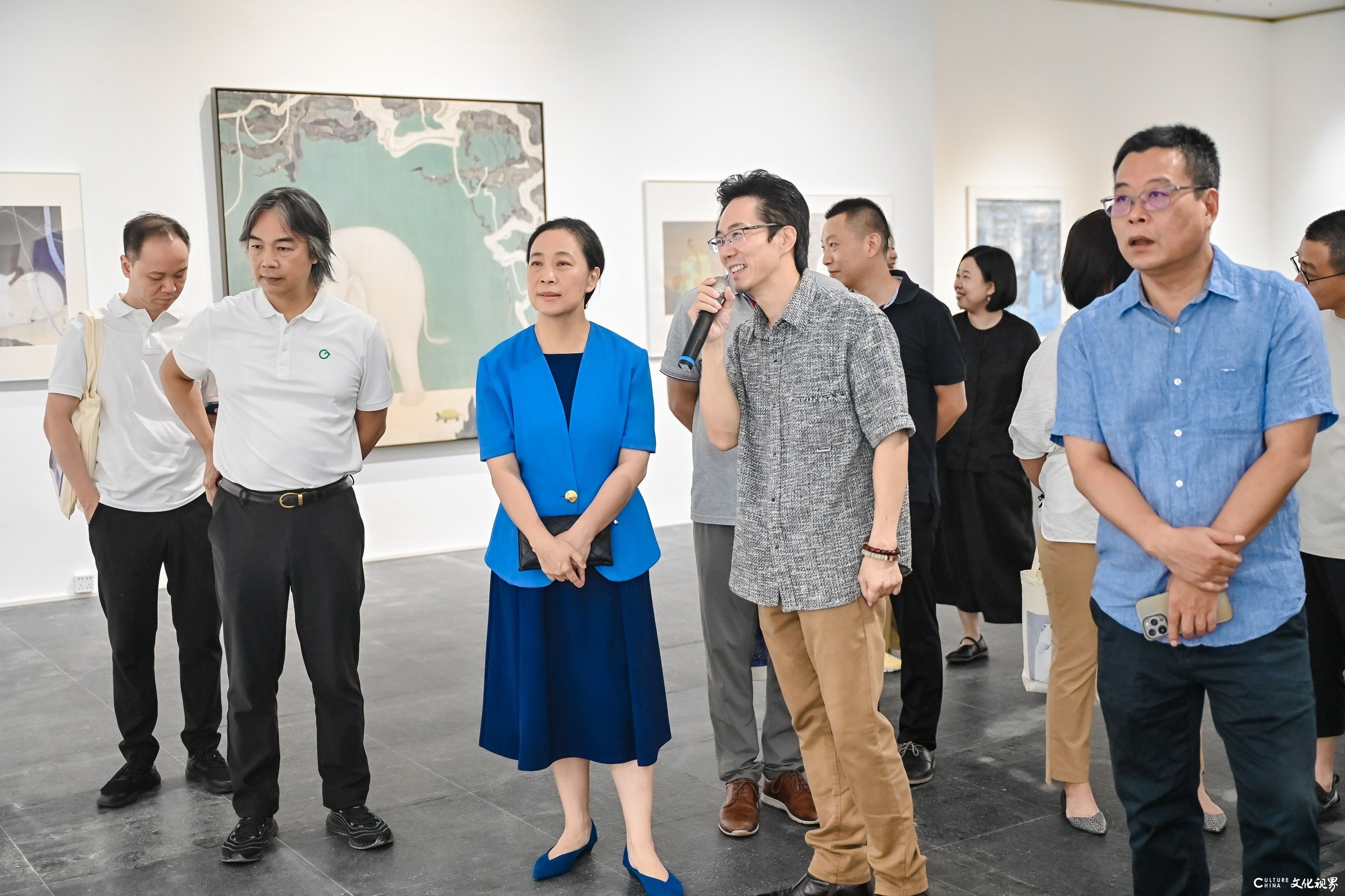 伴随热烈掌声,吴荣华宣布展览正式开展,随后策展人方广智带领在场嘉宾移步展厅进行导览观展。