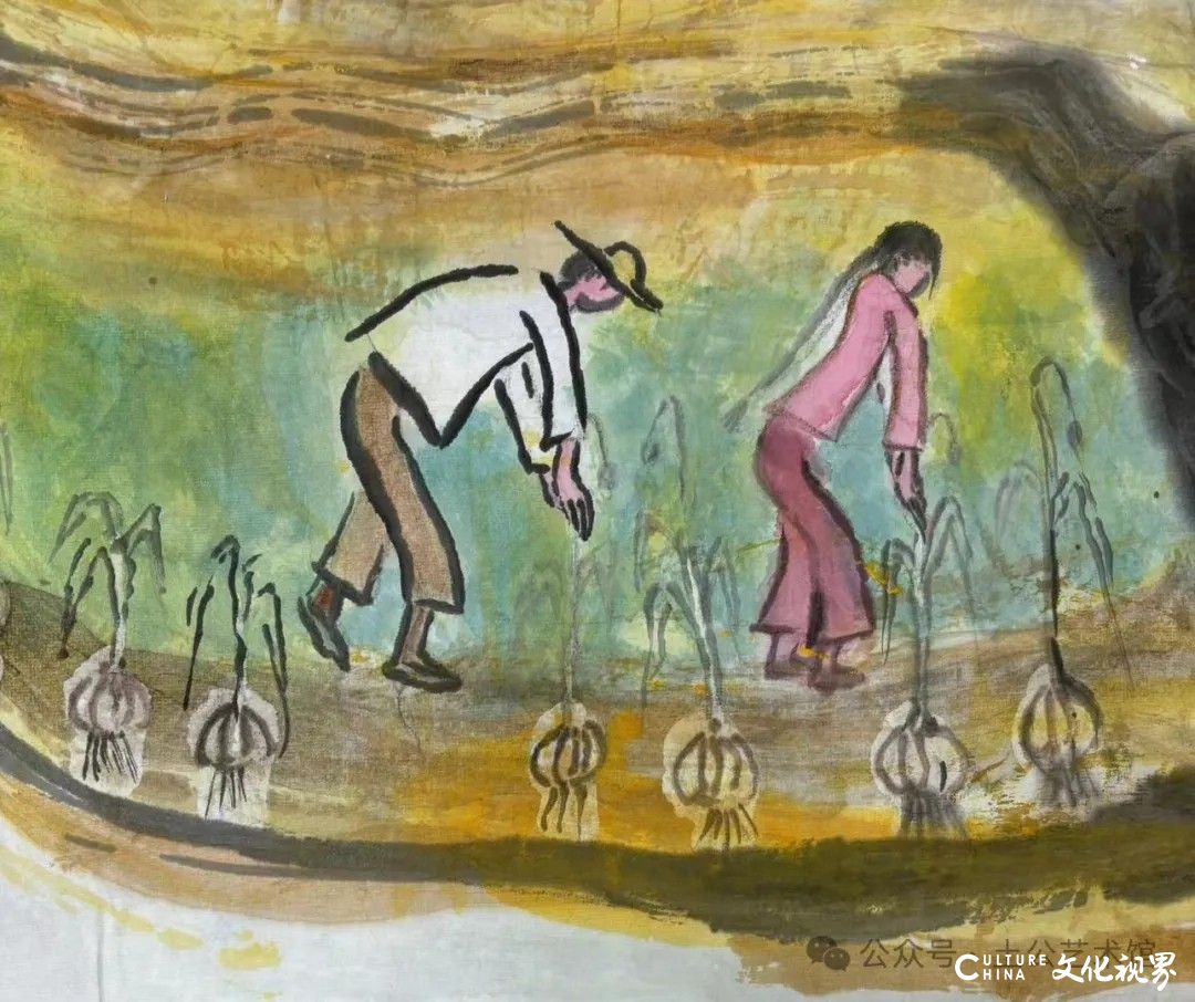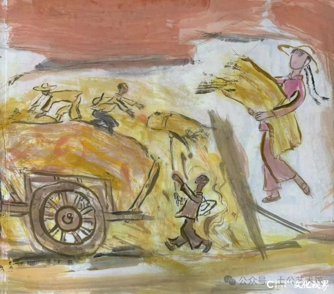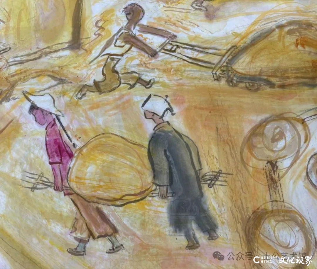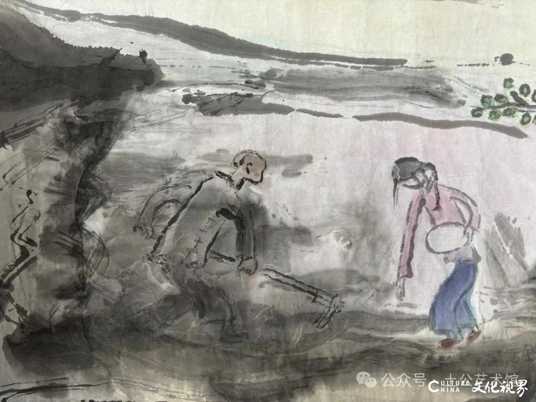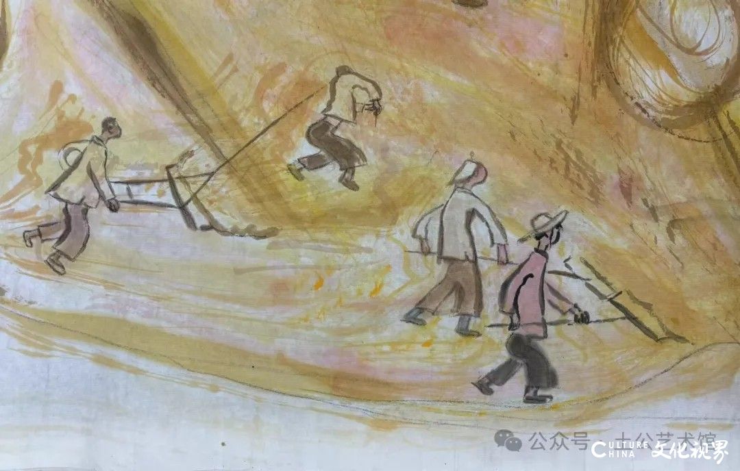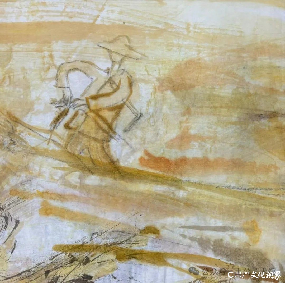 乙巳年开春,我六十九满,食七十之饭。想我弱能无大志向,仅画两笔拙画,好在一路得师提携、友帮助,忝列画画队伍,虽非懒惰,但天性默默,画的画一卷一捆的,除部分被参展示众和识爱者收藏外,多静存身边。快六十退休前,朋友们就提议办一综合个展,未实现,一晃到七十,综合个展仍是零。近年里不想个展事,集中精力画了一幅有关农业农耕的长卷画。此画二十多年前在西安就思谋着,还凭感觉无目标地勾描小图块。到北京的十多年里,画院创作任务多多,可此画事总在心中,随时获触动、撞灵感、理思路、谋形式、悟语言,随着积累逐多认识深化,目标慢慢显现,小图便不断地调整、修改,渐成模样,只是多原因未能动笔墨成画。2021年6月决意起大稿,2022年2月大稿成,动笔墨于宣纸正稿。其间幸有正居京的西安大学者诗人艺评家沈奇教授隔三差五审视指点,受益良多。10月初百余米铺陈妥。11月择大室依序置墙摆地邀国家画院同道通览指正,得高见后2023年2月整改成新样,拍图片函发西安诸师友讨教,又得深度启示,再改成眼下模样。现画长110余米、高96厘米,二米多一段计约五十段,分古代农业、春、夏、秋、冬五段落,基本依时散点叙事,拟再配等长之抽象图合奏,只是配图语言暂未确定未得绘制。好在现成之作可独立为画,为广听意见,将拙画五十段每次少则一多则三,再择其局部达或六或九幅逐天函发,盼得大家指正批评,若能再点滴进步也幸甚矣。