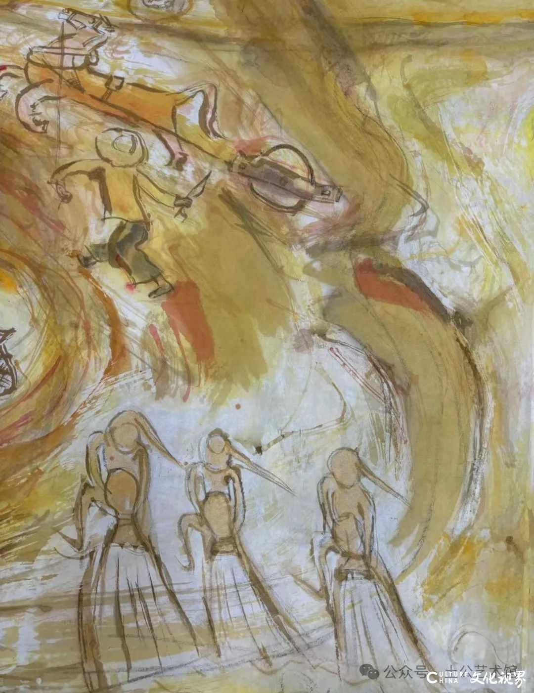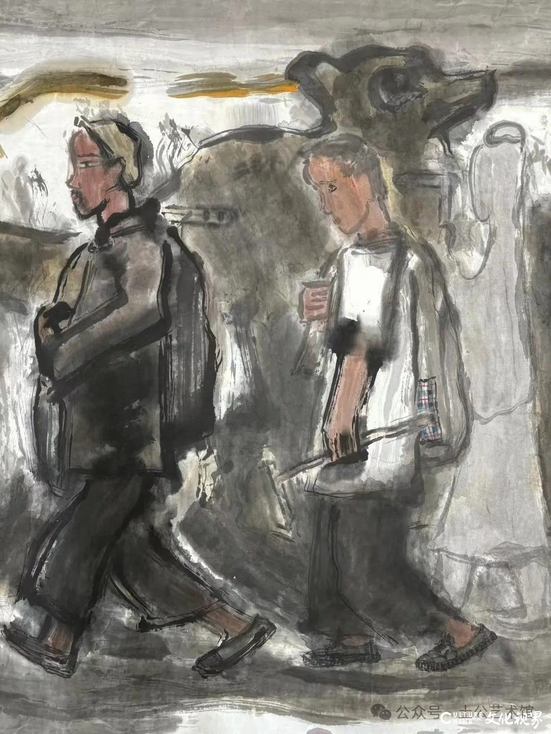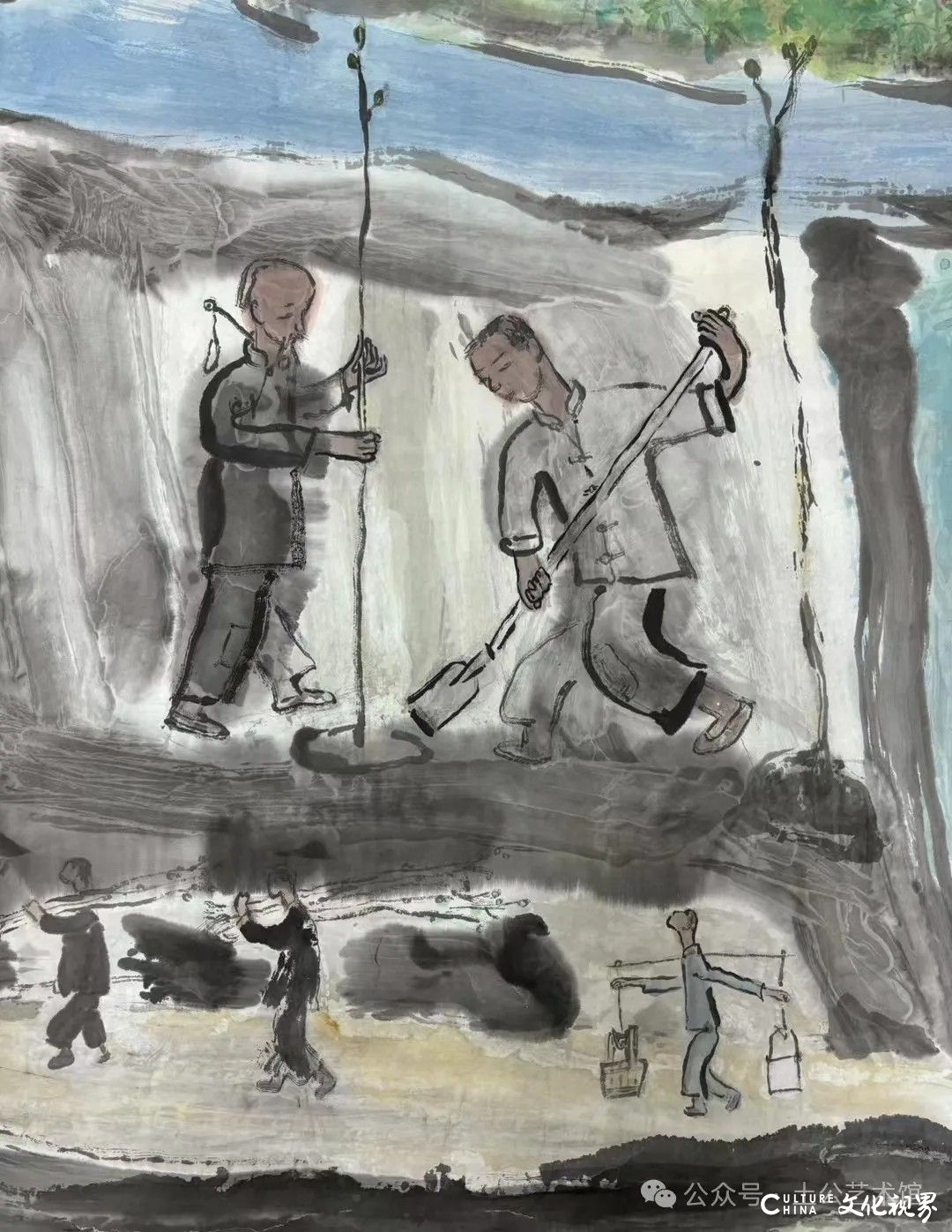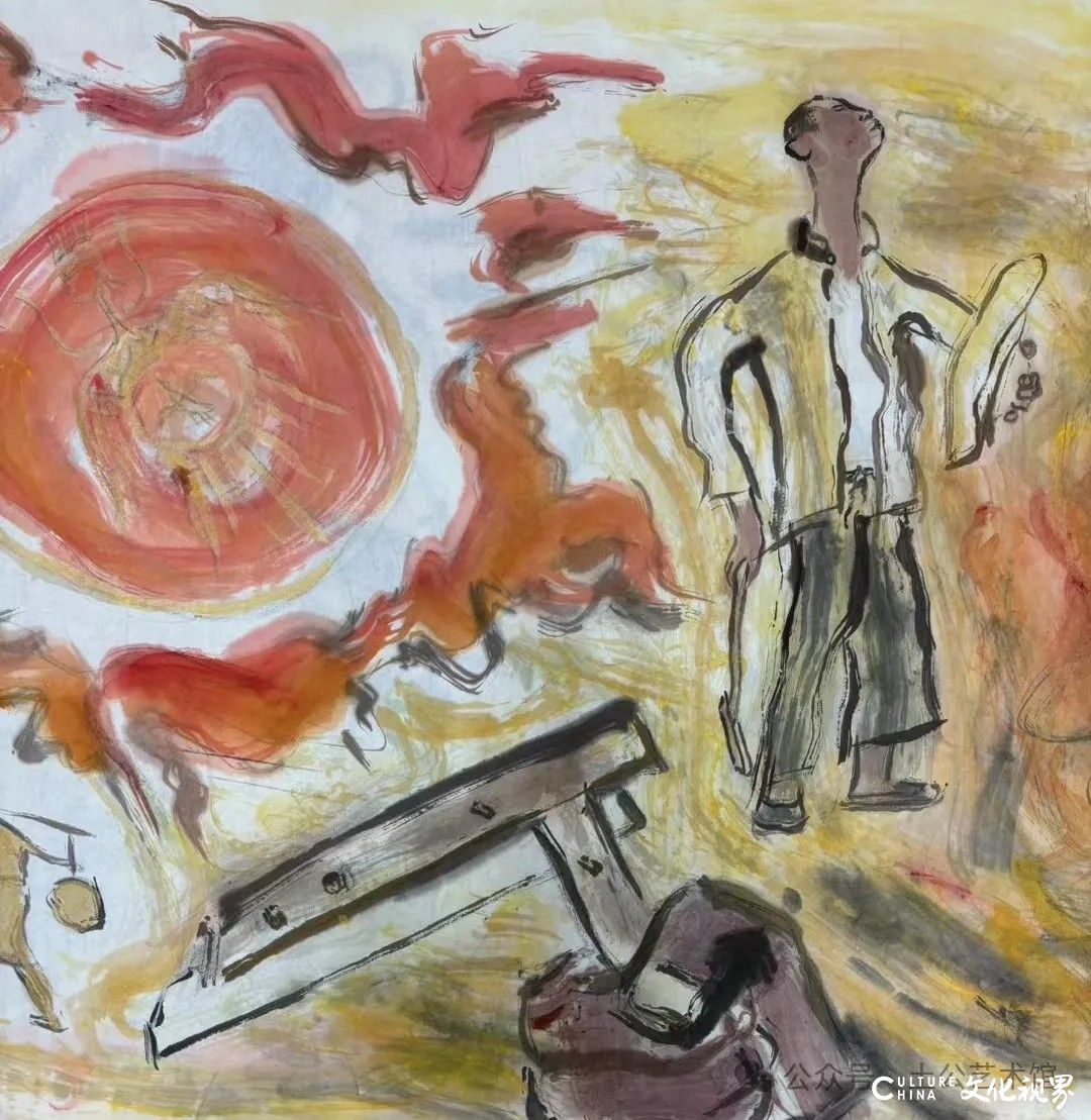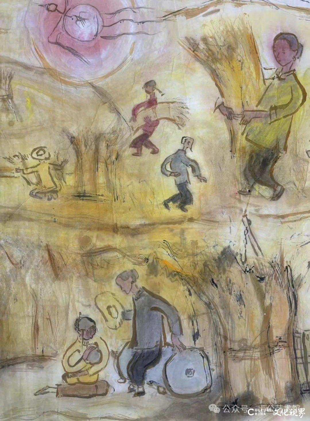 乙巳年开春,我六十九满,食七十之饭。想我弱能无大志向,仅画两笔拙画,好在一路得师提携、友帮助,忝列画画队伍,虽非懒惰,但天性默默,画的画一卷一捆的,除部分被参展示众和识爱者收藏外,多静存身边。快六十退休前,朋友们就提议办一综合个展,未实现,一晃到七十,综合个展仍是零。近年里不想个展事,集中精力画了一幅有关农业农耕的长卷画。此画二十多年前在西安就思谋着,还凭感觉无目标地勾描小图块。到北京的十多年里,画院创作任务多多,可此画事总在心中,随时获触动、撞灵感、理思路、谋形式、悟语言,随着积累逐多认识深化,目标慢慢显现,小图便不断地调整、修改,渐成模样,只是多原因未能动笔墨成画。2021年6月决意起大稿,2022年2月大稿成,动笔墨于宣纸正稿。其间幸有正居京的西安大学者诗人艺评家沈奇教授隔三差五审视指点,受益良多。10月初百余米铺陈妥。11月择大室依序置墙摆地邀国家画院同道通览指正,得高见后2023年2月整改成新样,拍图片函发西安诸师友讨教,又得深度启示,再改成眼下模样。现画长110余米、高96厘米,二米多一段计约五十段,分古代农业、春、夏、秋、冬五段落,基本依时散点叙事,拟再配等长之抽象图合奏,只是配图语言暂未确定未得绘制。好在现成之作可独立为画,为广听意见,将拙画五十段每次少则一多则三,再择其局部达或六或九幅逐天函发,盼得大家指正批评,若能再点滴进步也幸甚矣。
