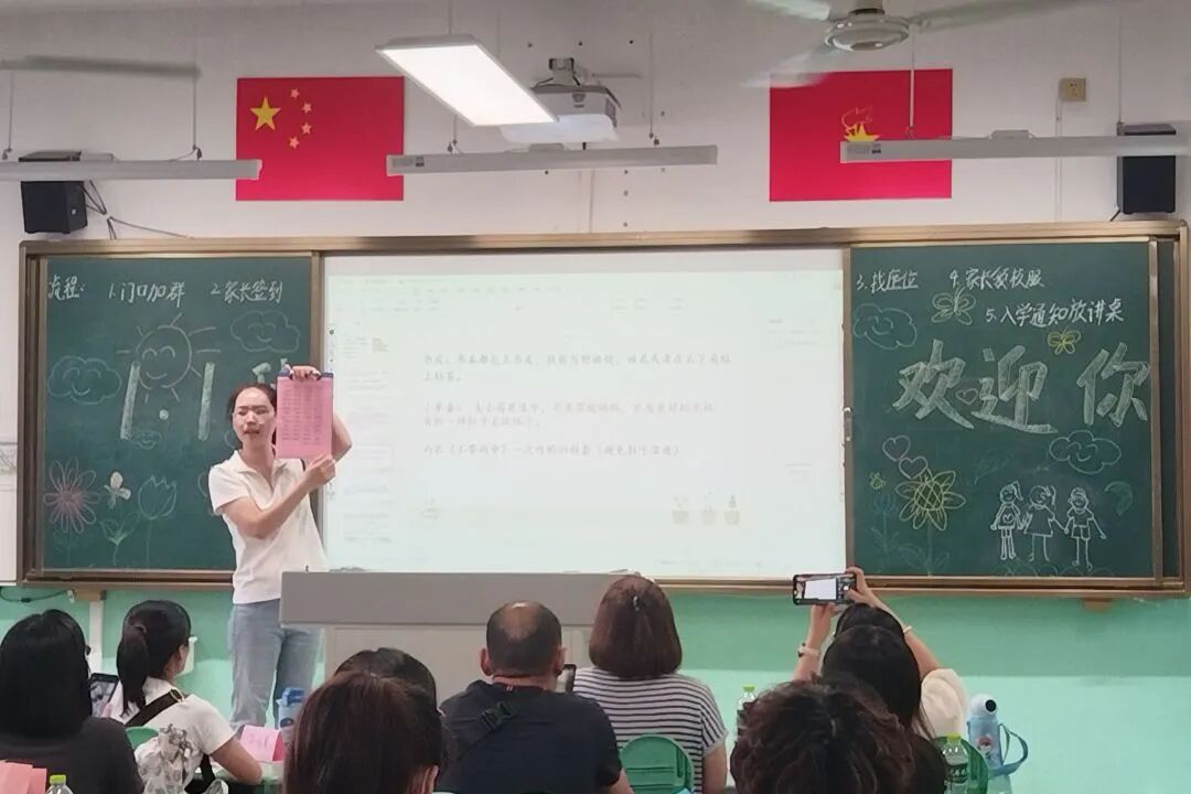 3.手续办理与家长沟通:班主任快速核验材料、与新生互动,同步组织简短家长会,讲解开学后作息、课堂纪律、家校沟通方式,现场解答家长关于午餐、课后服务的疑问。