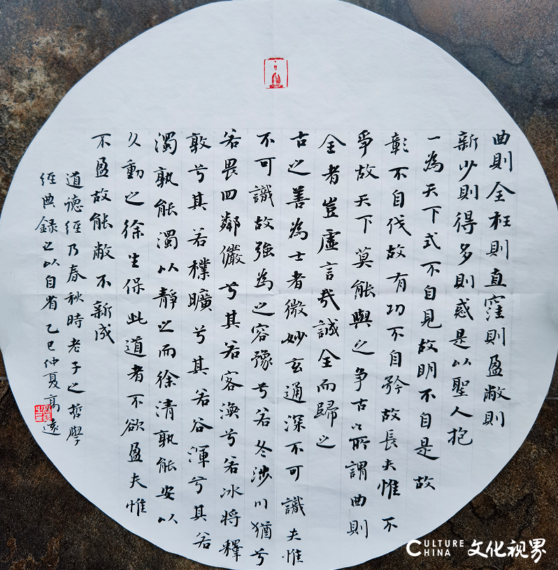 她的小楷,更是将这份灵秀推向极致。字字如珠落玉盘,大小错落却不显杂乱,行距宽绰似有留白透气,细看之下,笔锋舒展如蝶翼轻振,转折处圆润无棱角,仿佛能触到墨迹未干时的温润。她写小楷不疾不徐,似在与每个字对话,横平竖直中藏着对传统的敬畏,撇捺舒展里又透着自己的巧思,所谓 "寓古出新",正是在这一笔一划的坚守与突破中显现。