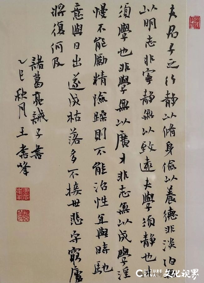 “斯文在焉”四字,语出《论语·子罕》。今王书峰以笔墨为舟楫,渡古今之川流,在此间展卷舒毫,正是对“斯文在焉”恳切追求。