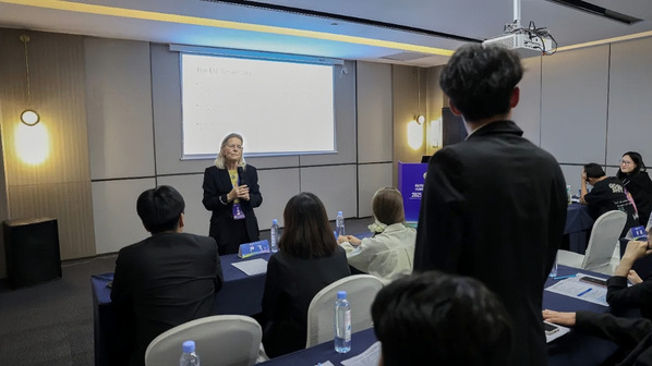 9月21日,在2025零碳学术研讨会暨第三届洪堡零碳论坛期间,奥地利前驻华大使、可持续能源全球论坛主席艾琳娜(Irene Giner Reichl)为在山东外事职业大学举办的中国国际零碳产教融合发展联盟国际零碳试验班的学生带来开班第一讲。