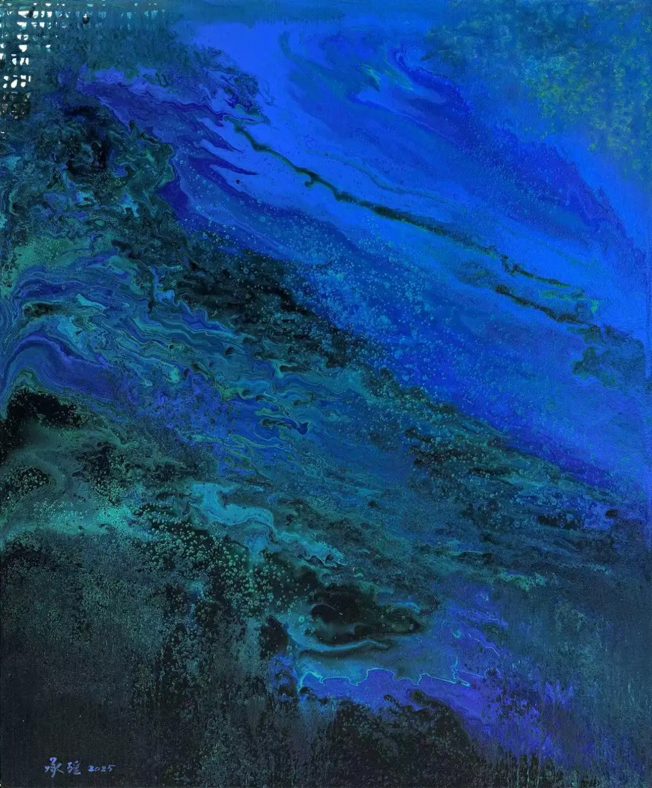 大象无形,大道至简,从抽象到具象,再回归到抽象,艺术应该可以激发更大的创造力与想象力。今天,人工智能技术的飞速发展,逼迫我们不得不重新思考艺术的当下与未来。除了自然山川,人类在并不漫长的时间中建立起了精神的世界,艺术就是重要的媒介手段之一,将一个看不见摸不着却可以感受得到的世界以视觉的方式呈现在大家面前。从洞穴图案到绘画,人类积累的视觉图像共同构成了今天我们可以眼见的世界,但有更多的看不见的宇宙奥秘等待我们用心去发现、去映射、去表达。我想,这也是在大量图像同质化以致于导致视觉疲劳的当下,承强的抽象艺术让人赏心悦目的另一个原因吧。