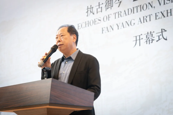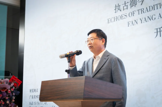 捐赠仪式结束后,本次展览艺术家范扬致辞答谢,广东省人大科教文卫委员会主任、广东省广播电视局局长、党委书记刘小毅宣布开幕。