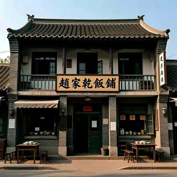 清朝末年,有位叫赵殿龙的年轻人,在济南刚刚开埠的普利门外青年会、北岗子(馆驿街西首)、万字巷一带,挑担子在路边摆摊,专卖大米饭(济南人称大米干饭)。1905年后,他在南岗子(新市场)搭建两间板房,正式取名赵家干饭铺。