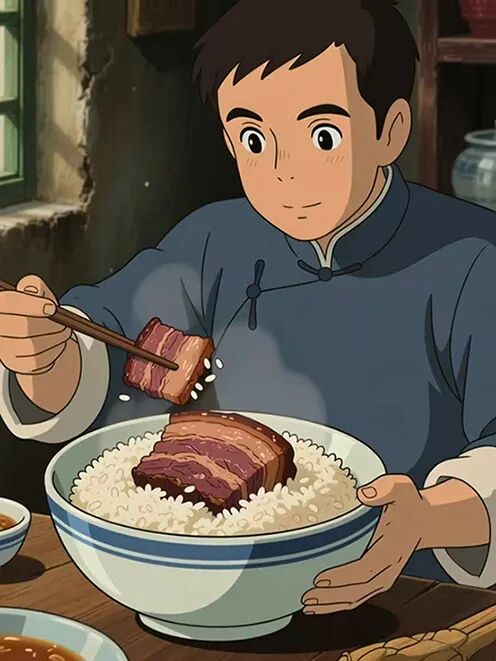 彼时买肉,除了钱还要肉票,要到指定的副食店里去买,而且都是冷冻肉,几乎见不到鲜猪肉。当时没有冰箱,父母买回来半斤或一斤肉,要把肉切成碎丁,舍不得切大块,用油煸炒后,放到碗里储存。每次炒菜时拨出少许,使白菜、萝卜、土豆、洋葱之类沾沾“腥”,有些肉味,勉强算是荤素搭配,这碗肉丁要吃好久。真正要过“肉瘾”,多吃几大块肉,只能等到过年过节。