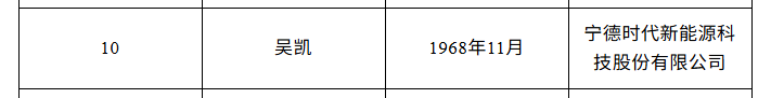 2023年6月21日,宁德时代公告称,近日收到公司董事、副总经理吴凯的书面辞职报告。辞任后,吴凯仍继续担任公司首席科学家,同时并担任公司电化学储能技术国家工程研究中心主任。