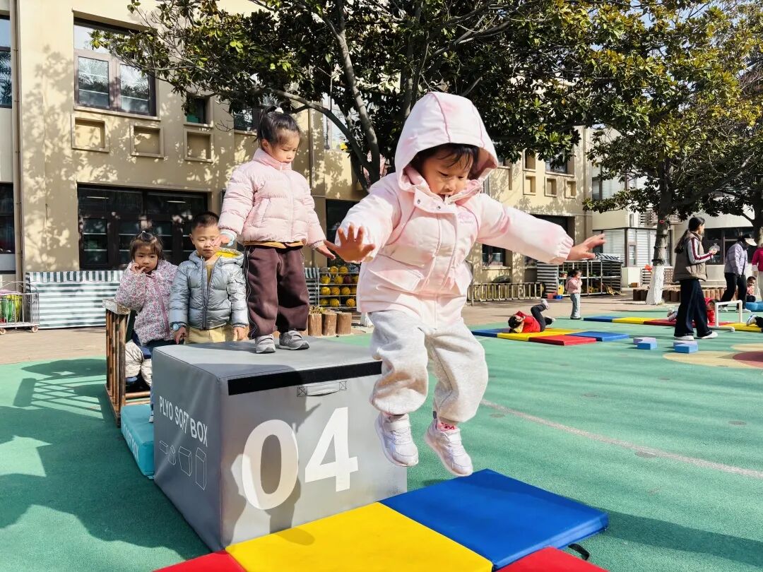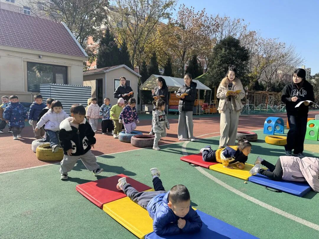 充分利用户外场地优势,以各类安全适配的器械为载体,鼓励幼儿在自主探索中提升综合体能。通过创设丰富多样的运动情境,引导幼儿自由组合器械、创新玩法,在真实运动场景中自然整合走、跑、跳、钻、爬等基础动作,发展平衡、灵敏与力量,同时培养幼儿在真实运动情境中发现问题、解决问题的能力和勇于挑战的运动精神。