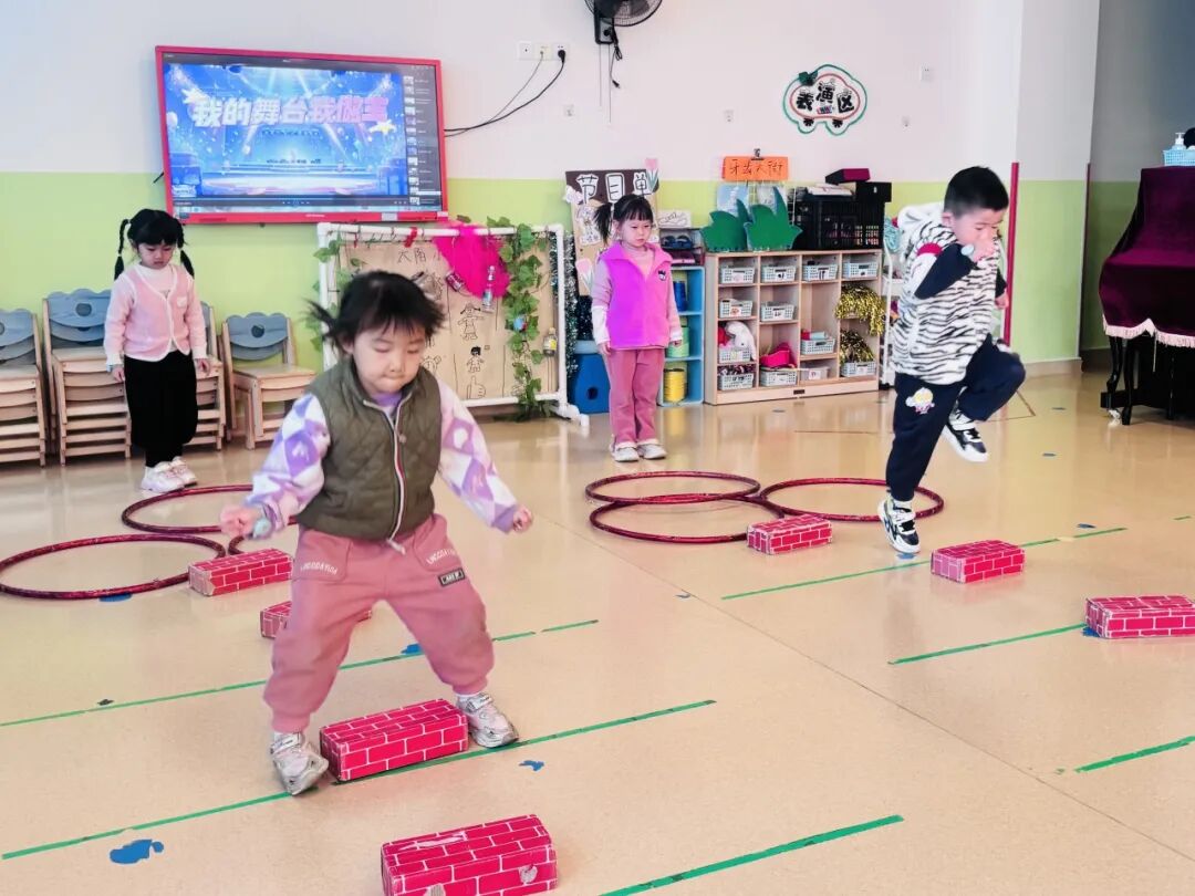 构建三级联动、循序渐进的运动体系:小班通过篮球游戏培养器械操控感,中班借助呼啦圈发展身体协调性,大班则以跳绳训练提升手-眼-足的协同能力与连续跳跃的能力。既遵循幼儿发展规律,又聚焦核心运动素养的阶梯式发展,实现身体能力的系统建构。
