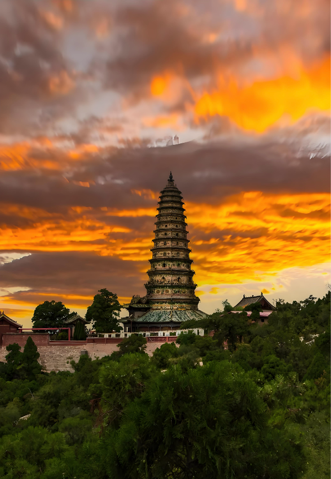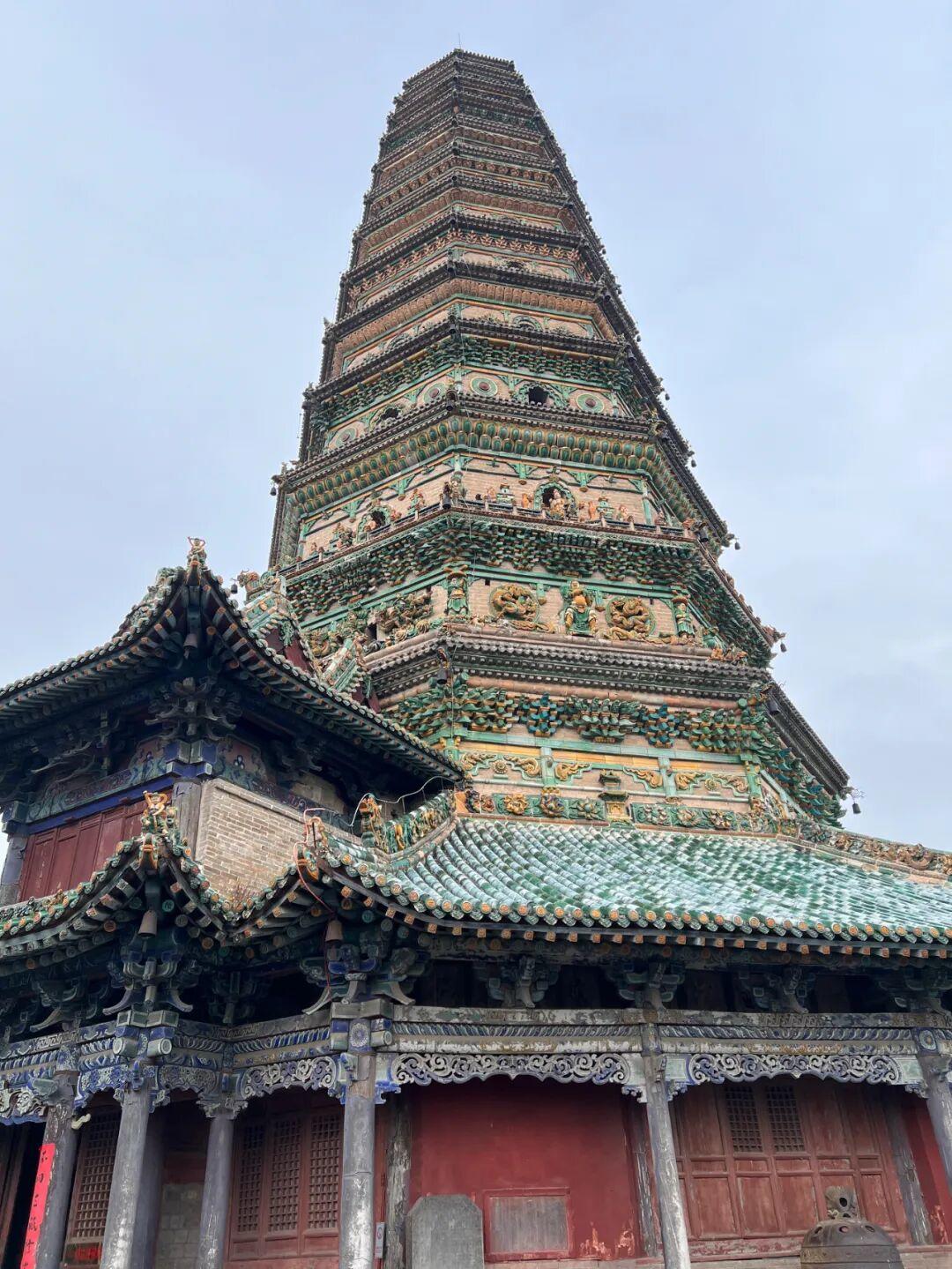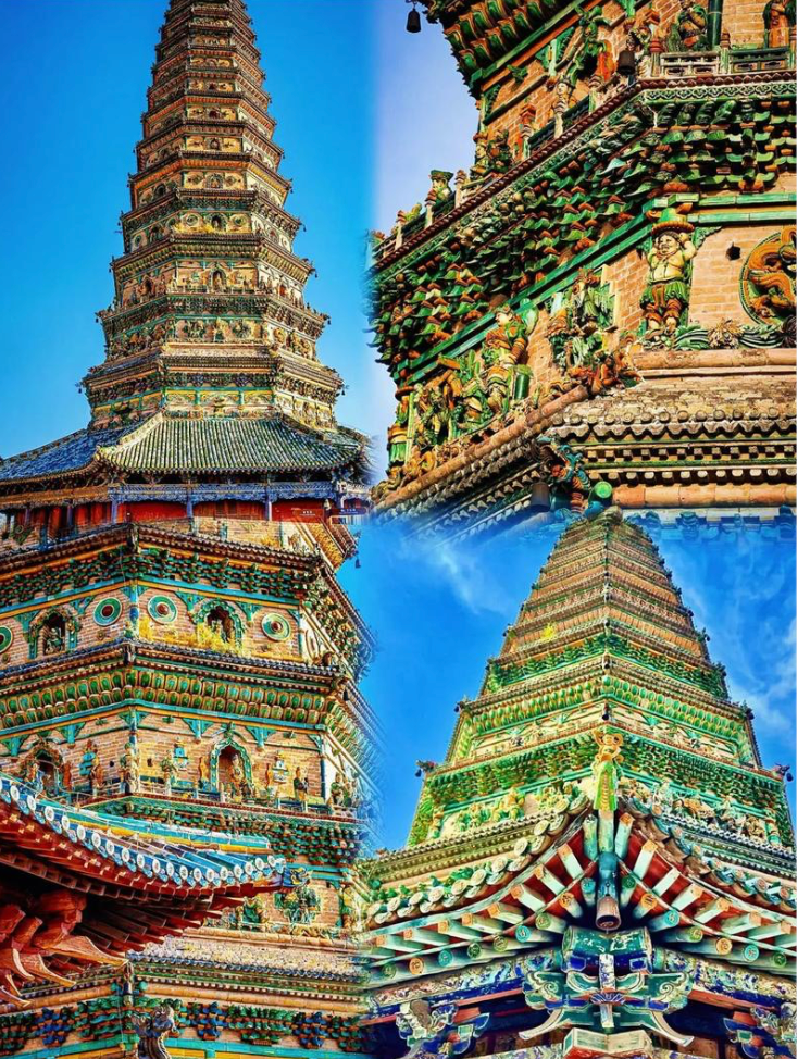 您们去过了五台山了吧:“明万历年间修建的五台山显通寺铜塔、清初重建的北京真觉寺金刚宝座塔,均可看到飞虹塔艺术语言的延伸。尤其琉璃镶嵌工艺,据说都是广胜寺匠人传播出去成为华北地区佛塔的经典装饰手法。”