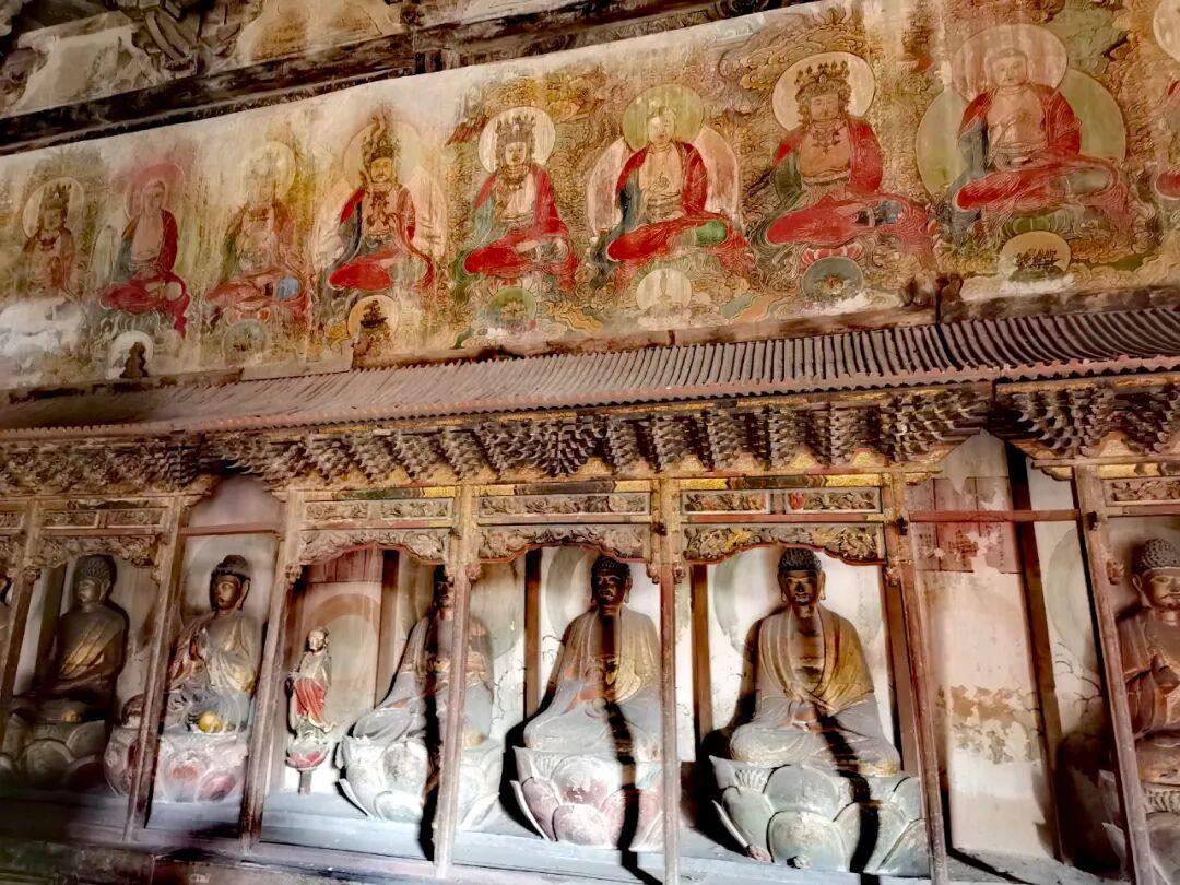 我们走进了“毗卢殿”这是元代的建筑,毗卢殿的藻井、佛龛等处的镂雕木刻采用多层透雕技法,繁复精细的缠枝花纹与佛教纹样结合,展现了元代木雕工匠高超的空间处理能力。