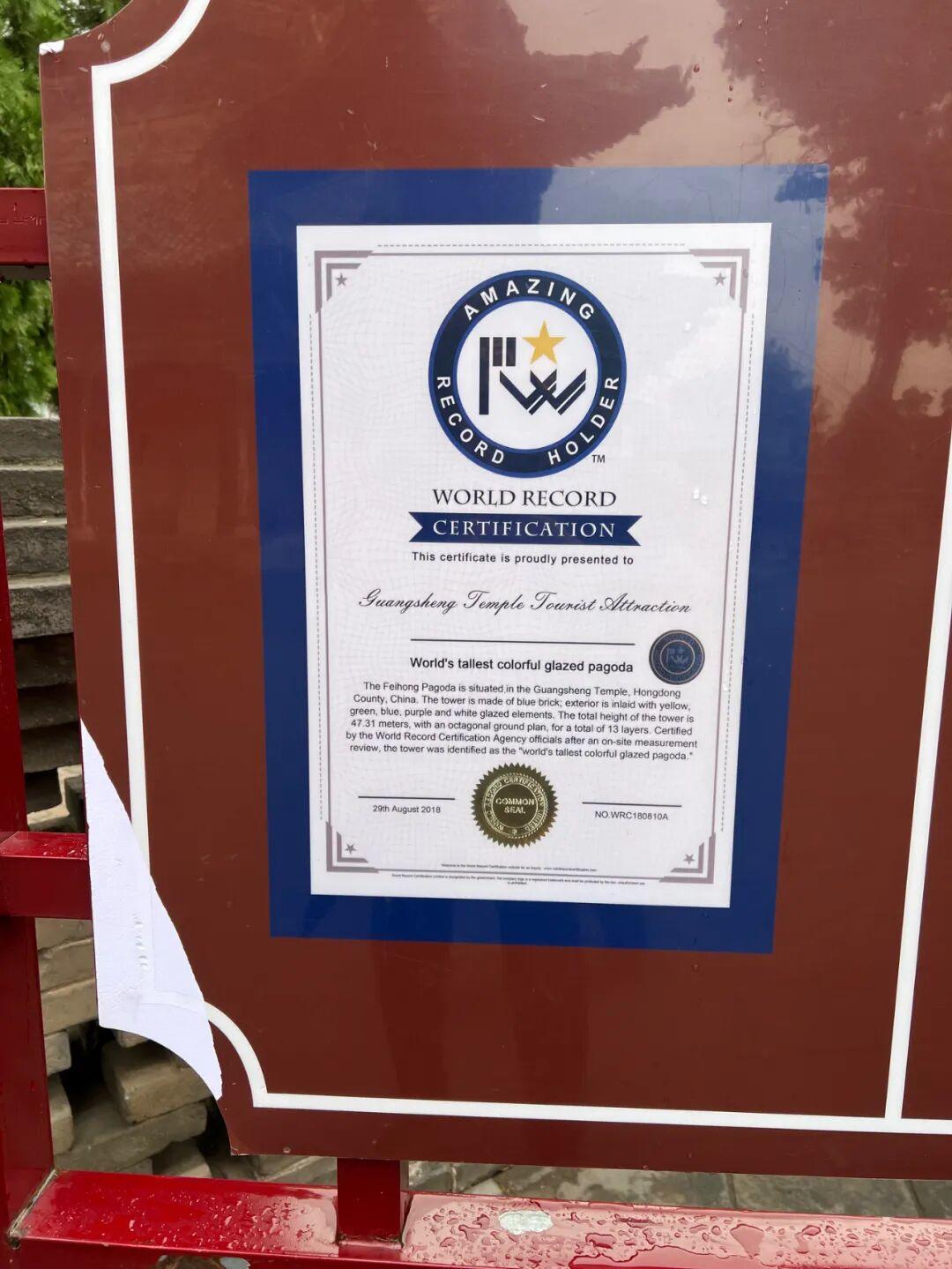 阳光穿透云层,就在这一瞬间,一座七彩宝塔从阴霾中跃出,通体闪耀着不可思议的光芒。这便是被认证为“世界最高的多彩琉璃塔”的飞虹塔,其名不虚,恰似雨后天际的一道虹霓,凝固在大地之上。
