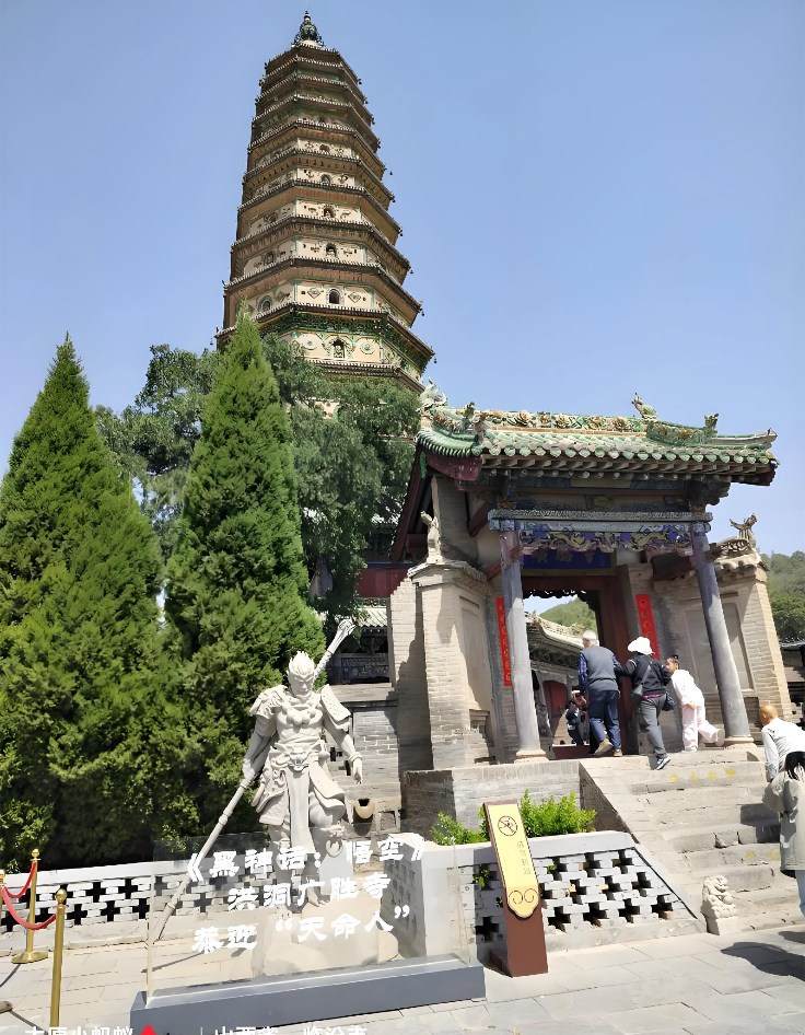 突然,不知从哪里窜出了一只手持金箍棒的黑悟空从我们身边快速擦过,一群黑旋风的粉丝们为他喝彩着,紧接着蜂拥在打卡处盖着景点专用章。