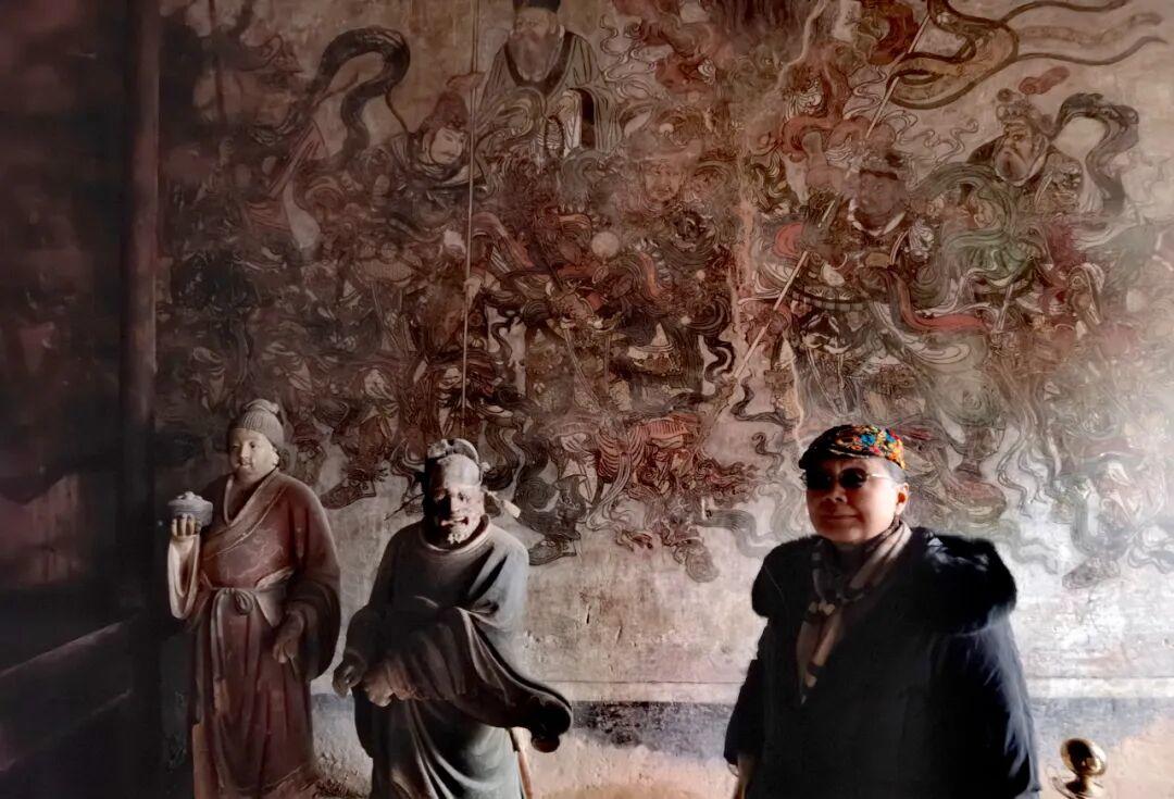大殿北面的壁画一下子吸引了舒建新的注意,我也凑近端详,他边看边为我讲:“你看画面以‘主尊居中+诸圣环绕’的曼荼罗式构图展开,规模宏大。