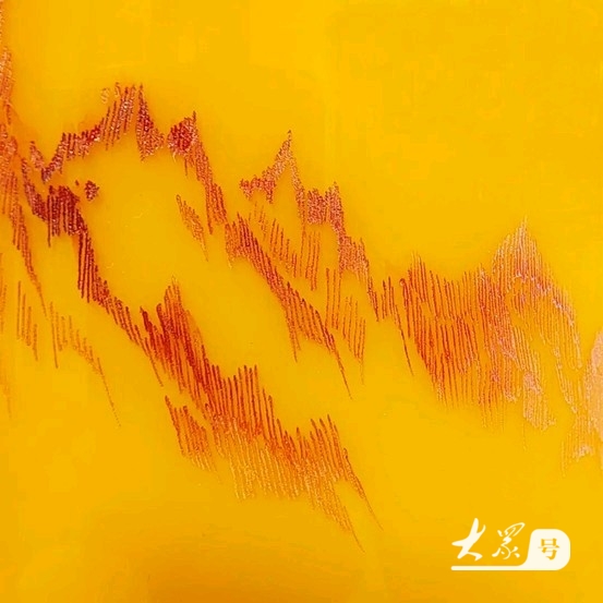 阚方乾创作的《万山红遍,激流回转》,正是展现了红叶柿岩的深秋万山红遍。作品布局疏朗大气、以少胜多,镌刻刀法精湛、虚实相生,巧妙诠释出景区以科技赋能文旅,绘就高质量发展新图景的生动内涵。