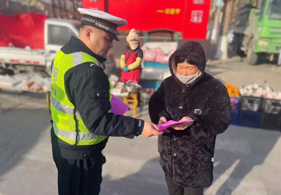 郓城县公安局交通管理大队按照冬季守护行动要求,筑牢冬季农村道路交通安全防线,切实提高广大交通参与者的文明意识、法治意识和安全意识,12月21日,大队组织警力走进辖区乡村集市开展交通安全宣讲活动,把交通安全送到群众身边。