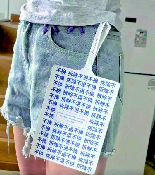 为了防止“蹭穿”,不少商家给服装挂上了尺寸夸张的吊牌,不仅“比脸还大”,还密密麻麻写满警告:“试穿请保留,拆除不退不换。”更有甚者在拉链上挂密码锁,消费者确认收货后才会告知密码。商家表示,这种看似“荒唐”的举动是对“七天无理由退货”政策被滥用的无奈反击,通过物理限制降低恶意退货行为。