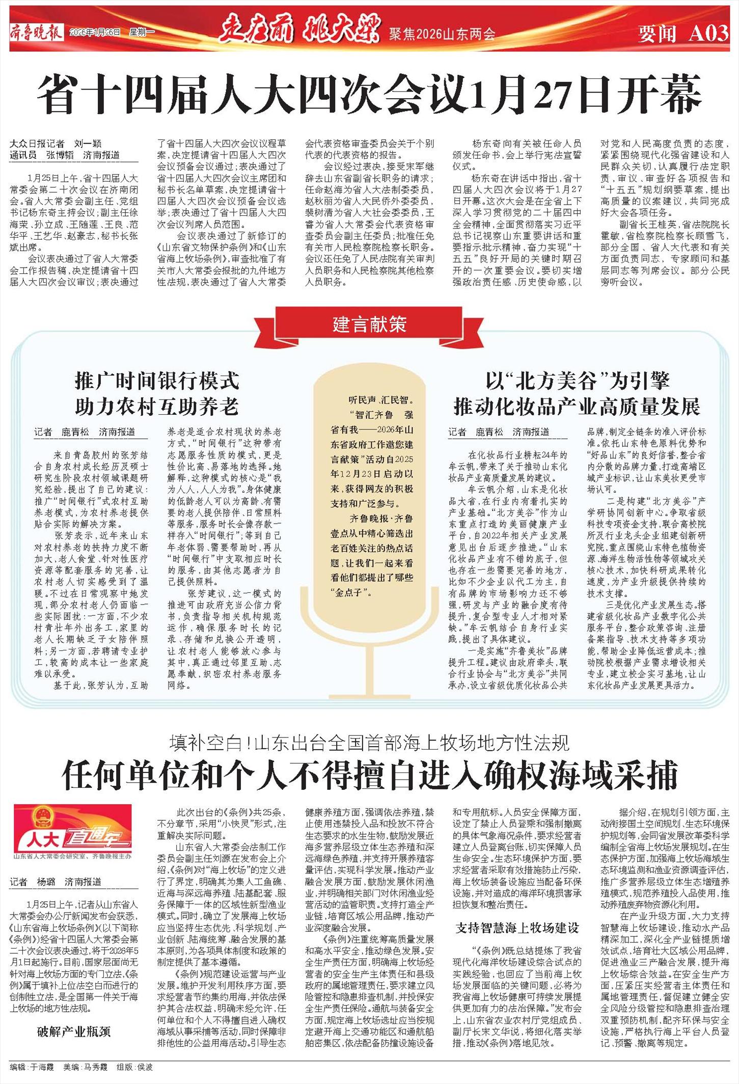 1月25日上午,记者从山东省人大常委会办公厅新闻发布会获悉,《山东省海上牧场条例》(以下简称《条例》)经省十四届人大常委会第二十次会议表决通过,将于2026年5月1日起施行。目前,国家层面尚无针对海上牧场方面的专门立法,《条例》属于填补上位法空白而进行的创制性立法,是全国第一件关于海上牧场的地方性法规。