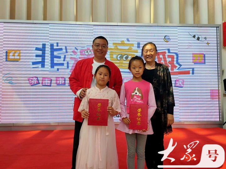 2024年4月27日举行的“非遗童趣”非遗作品展开展仪式上,几位小朋友来到现场,参加了作品展的开展仪式。开展仪式上,小同学们还收到了山东省民间文艺家协会理事、济南民间文艺家协会副主席王涛老师和济南剪纸、济南叶雕市级代表性传承人都婉莉老师为他们颁发的证书。