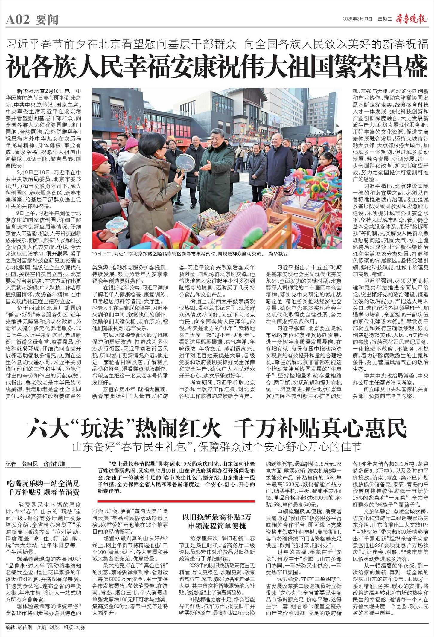 2月9日至10日,习近平在中共中央政治局委员、北京市委书记尹力和市长殷勇陪同下,深入科创园区、养老服务街区、新春市集考察,给基层干部群众送上党中央的关怀和祝福。