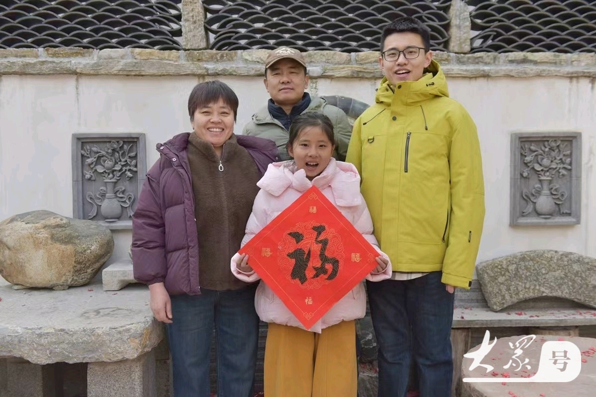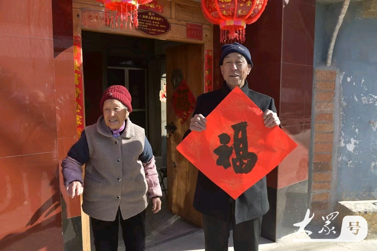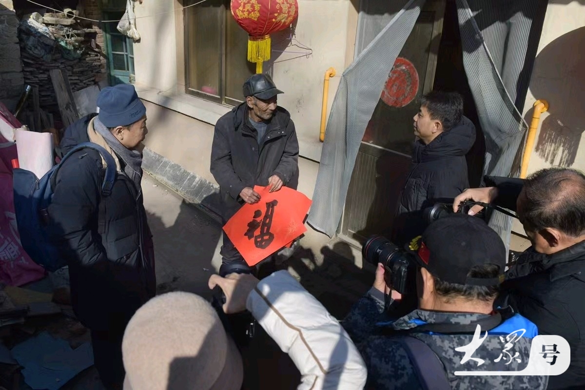 志愿者们现场为村民赠送福字,用镜头定格阖家团圆的温馨瞬间,为乡亲们免费拍摄全家福。