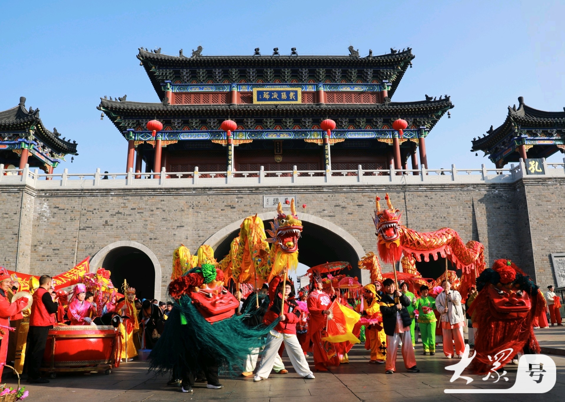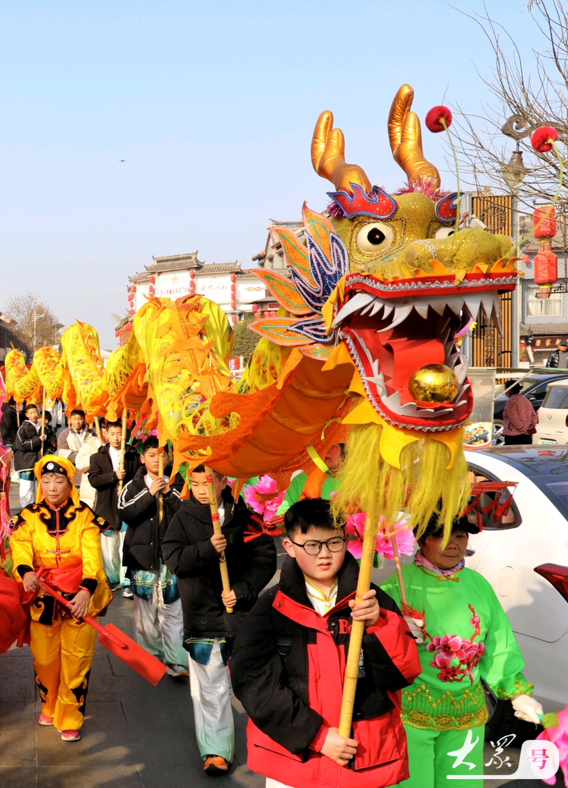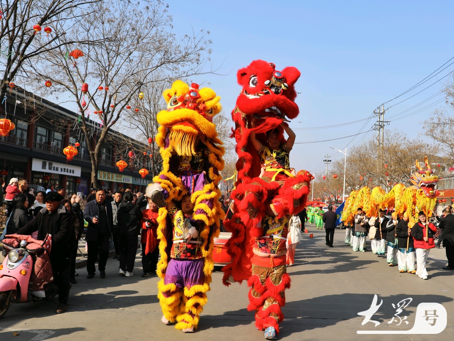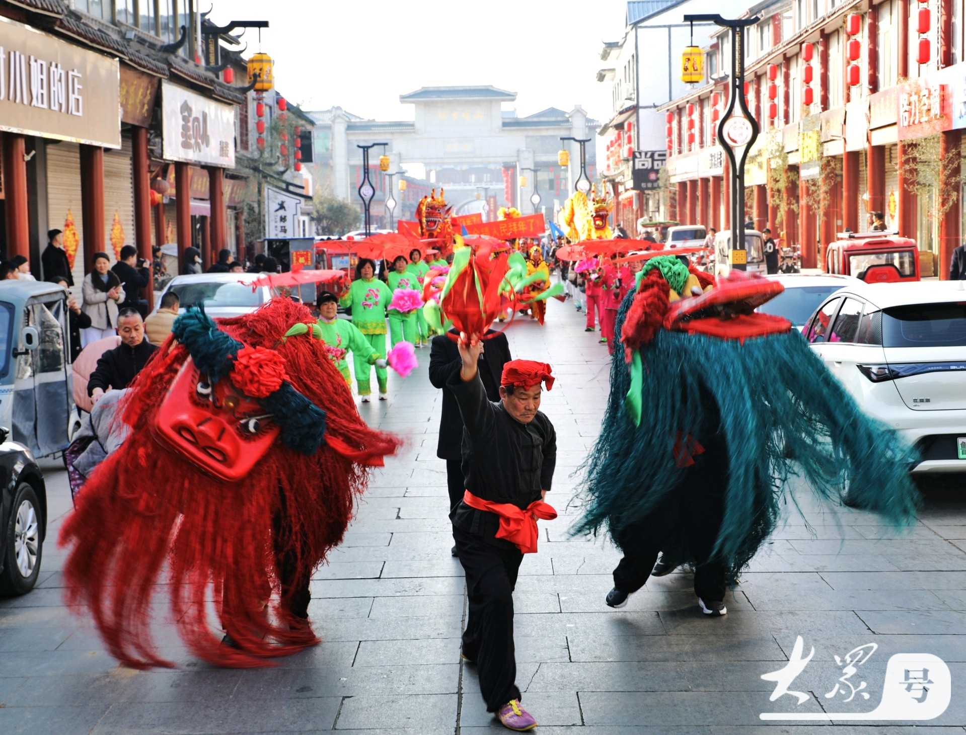 2月20日,大年初四,郯城县马头古镇的街头熙熙攘攘,巨龙昂首、雄狮欢跃,一同贺新春,马年的马头古镇好一番热闹景象。