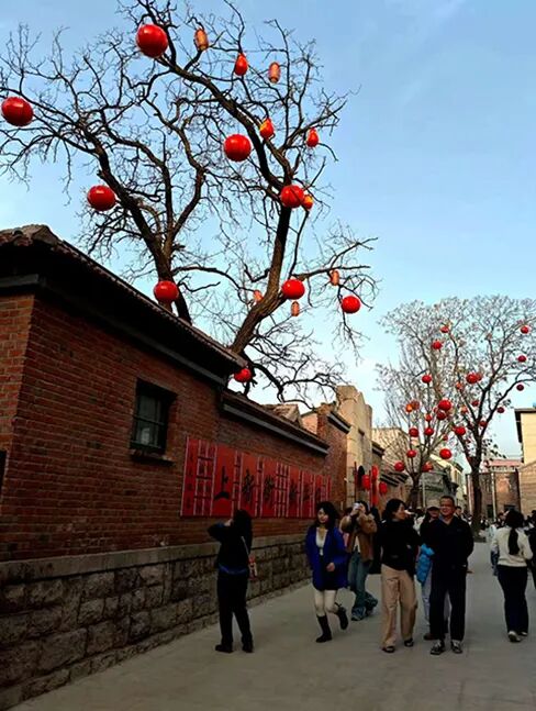 春节前,整修一新的上新街,在原上新街小学广场上设置一条长二十一米、高七米、宽六米半的龙头鱼身的空飘鳌鱼,因其体型庞大,色泽艳丽,形态夸张,又蕴含着“独占鳌头”的美好寓意,迅速成为这一历史街区的网红打卡点,吸引了众多游客。
