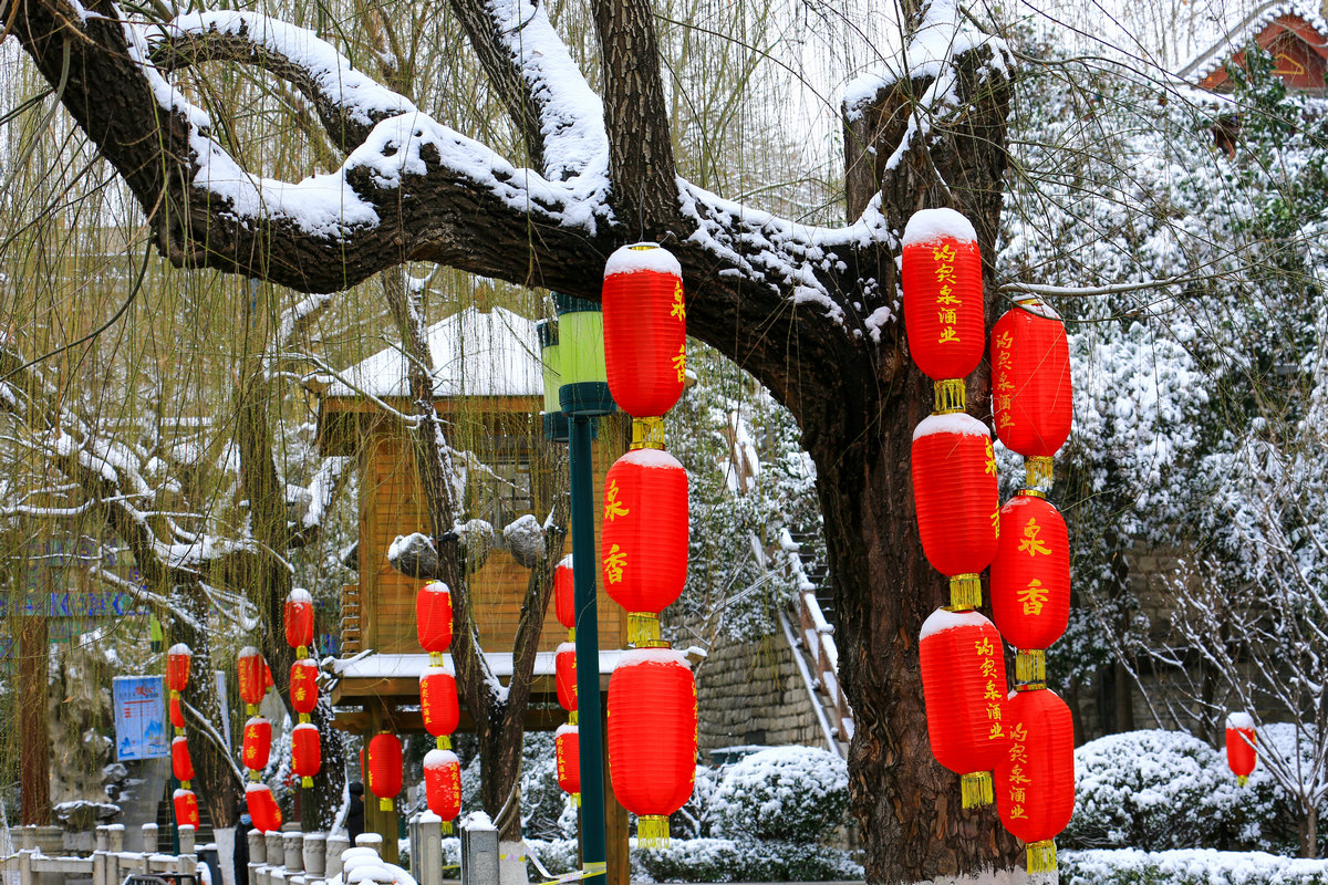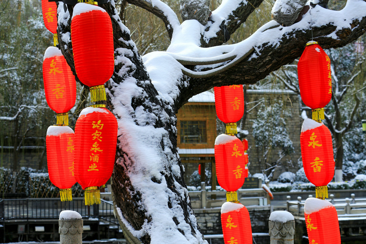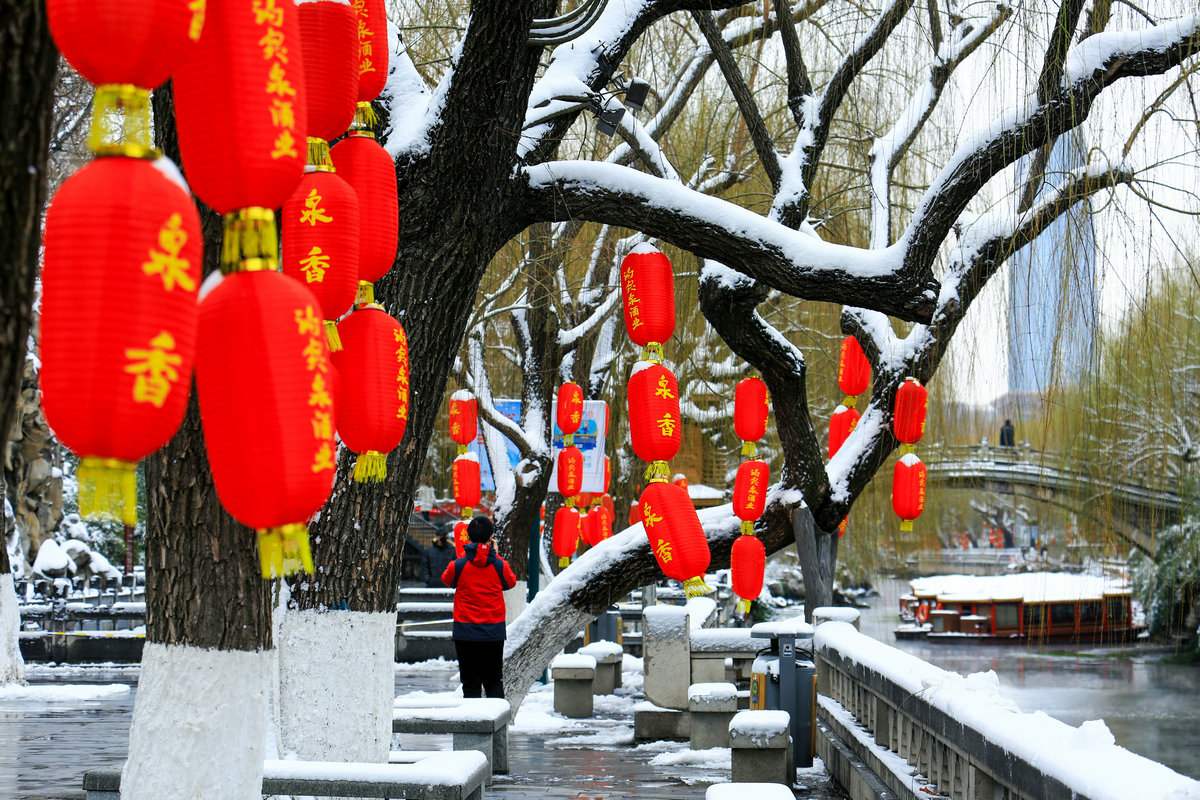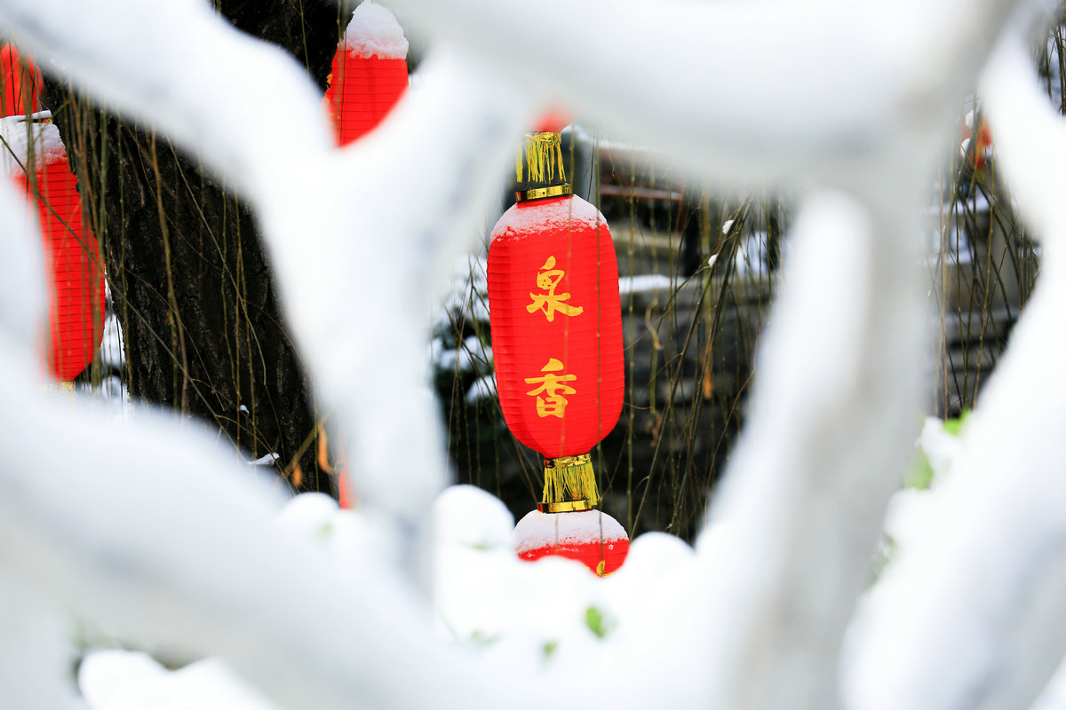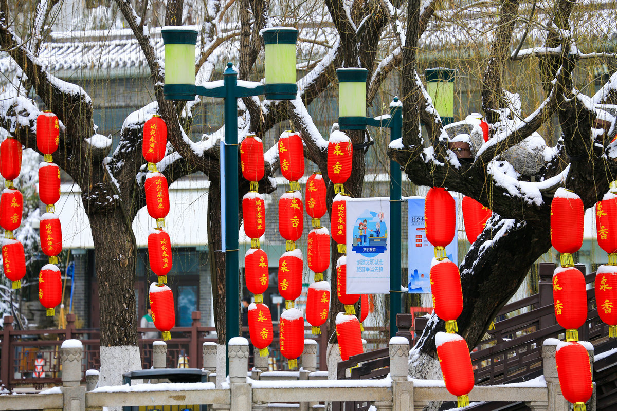 春雪落泉城,灯笼映琼华