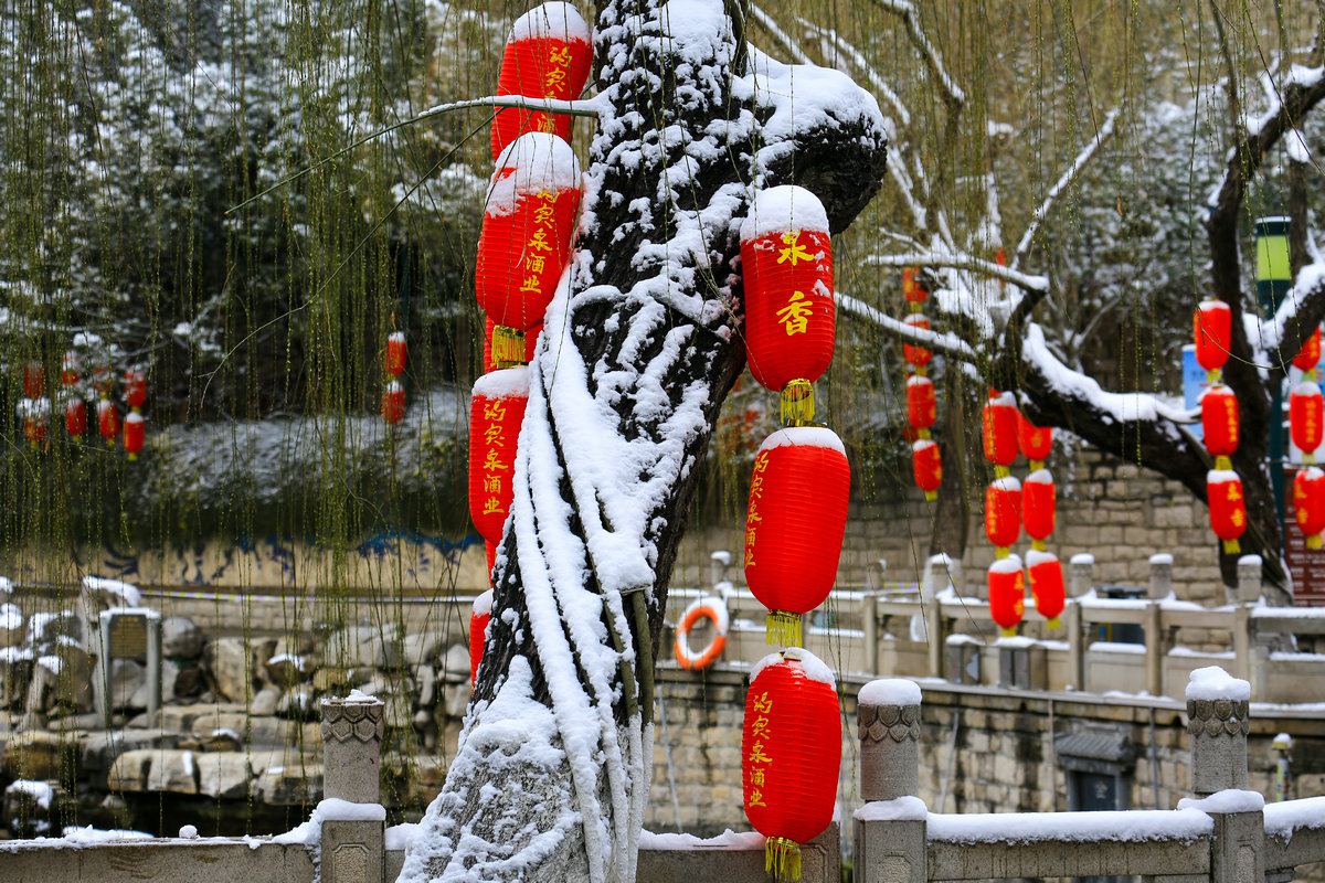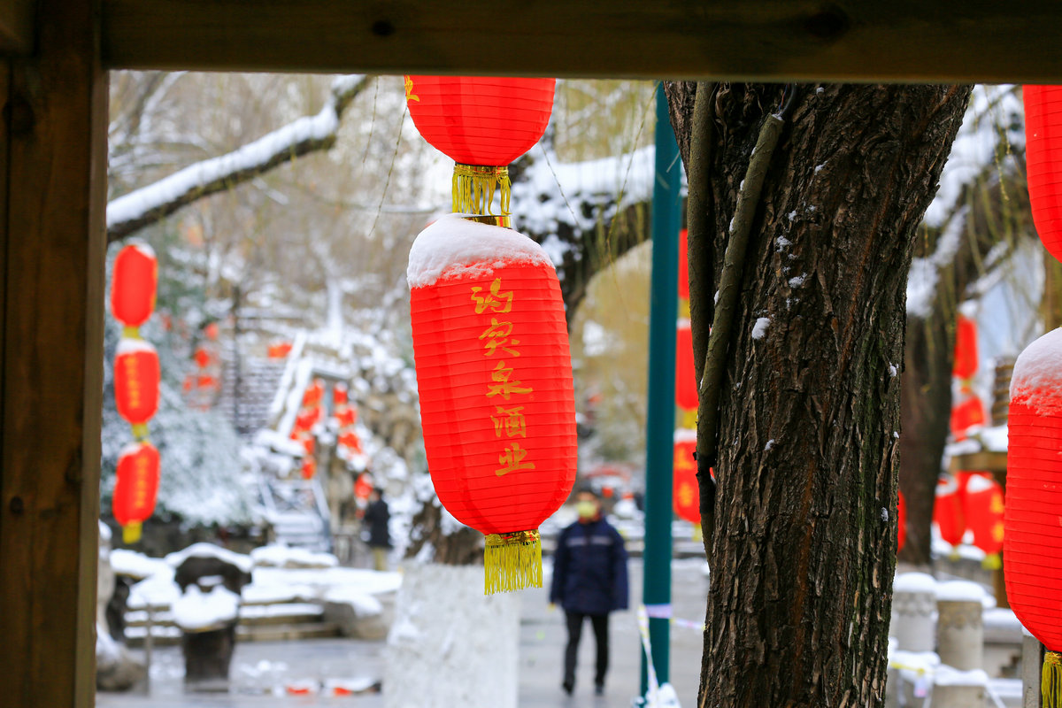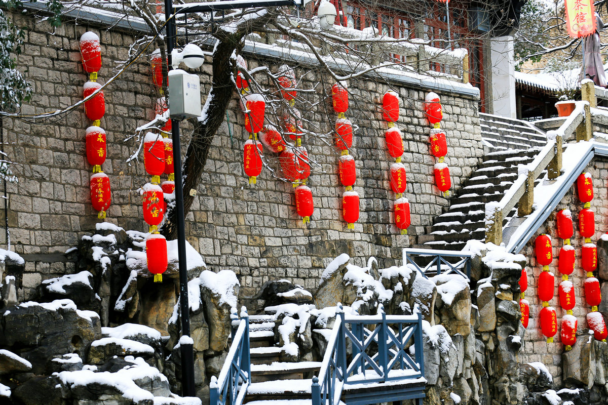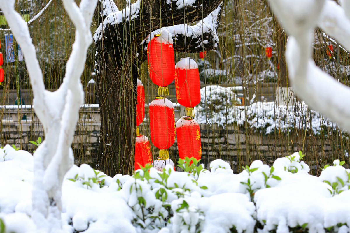 春雪落泉城,灯笼映琼华