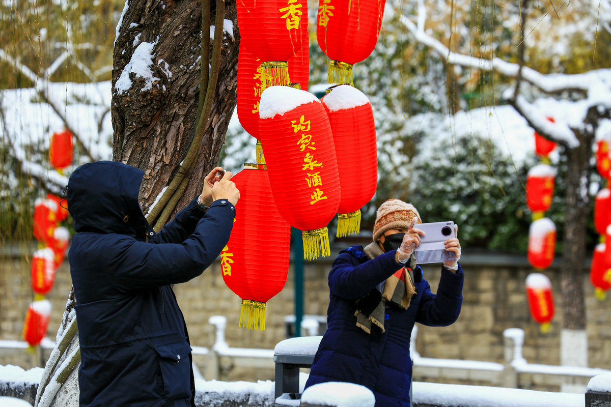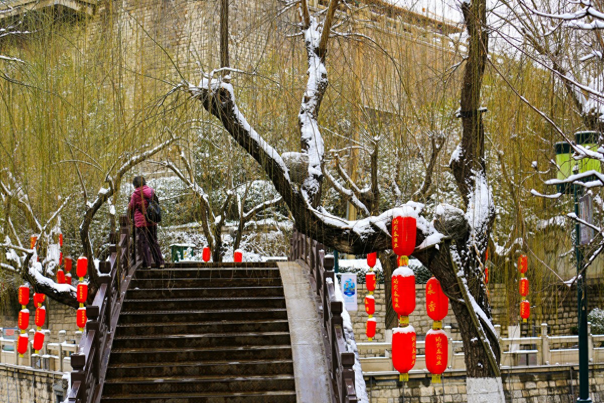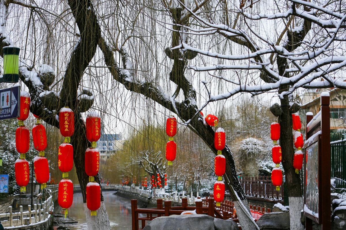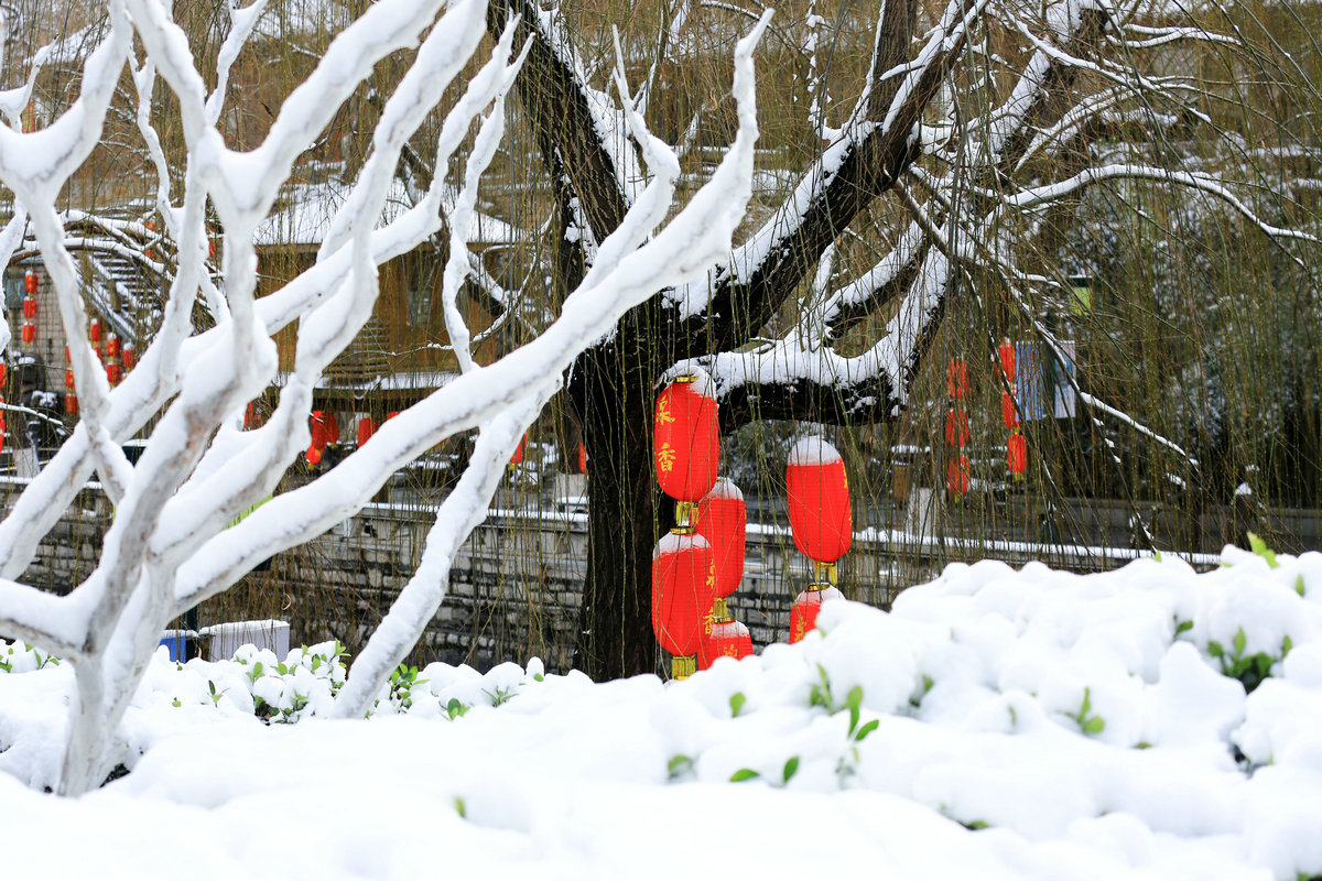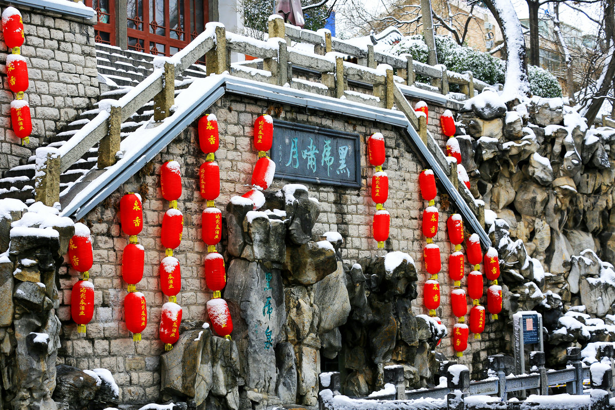 春雪落泉城,灯笼映琼华