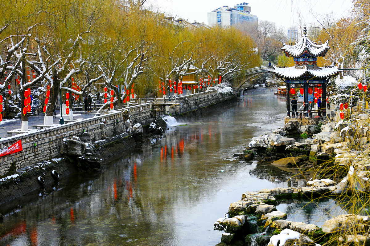 雪落不停,冷的是天,暖的是心。护城河冰下暗涌着千年活水,黑虎泉在风雪中喷薄着生机,灯笼的光晕里浮动着人间烟火——这便是济南的春雪,冷冽中藏着滚烫的暖意,混沌里透出踏实的明亮。