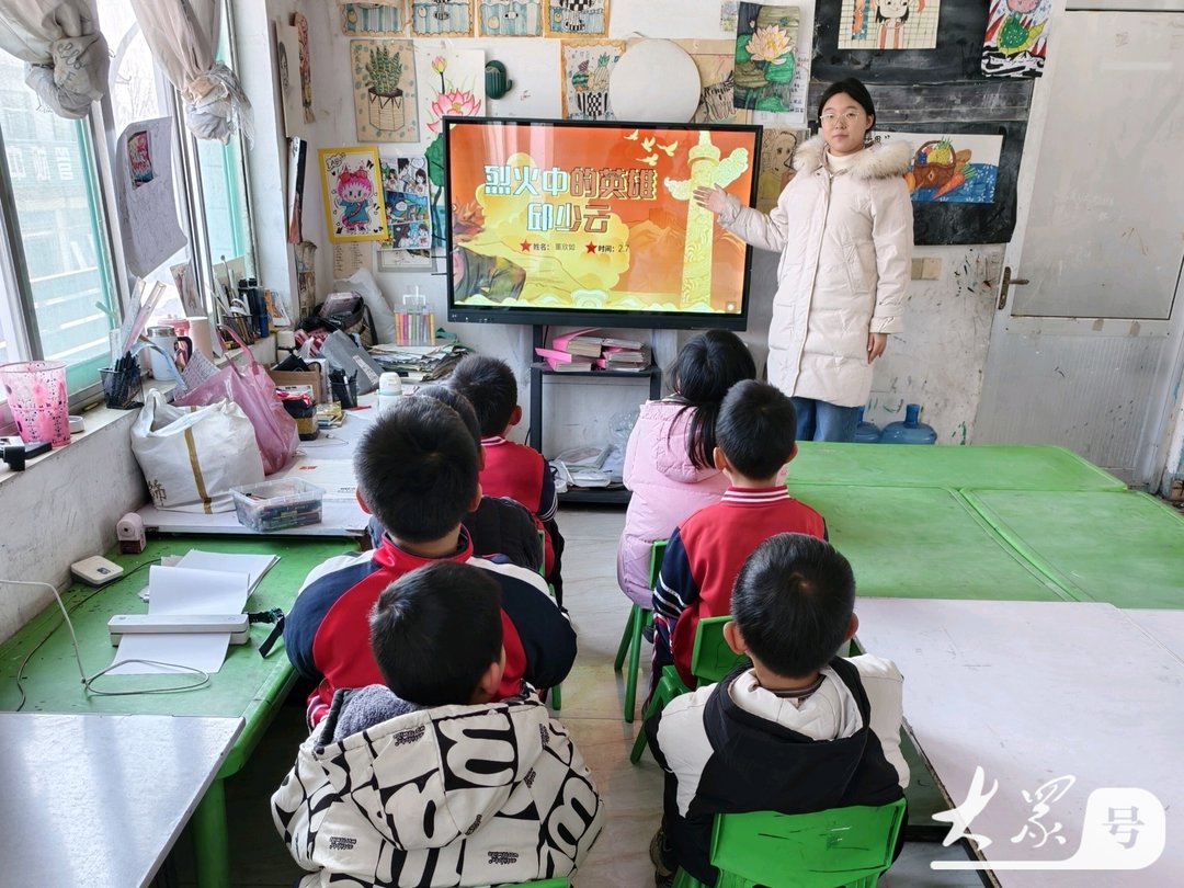 2月7日,星澜服务队于济南市商河县迈田艺术创想儿童绘画室举办“画说英雄,童心向红”社会实践活动。活动中,服务队成员以绘画为载体,结合英雄故事讲解、红色作品创作等形式,生动讲述了雷锋、刘胡兰等模范人物的感人事迹,引导孩子们在情境中理解英雄品格与红色精神。随后进入绘画创作环节,孩子们在志愿者指导下神情专注、积极投入,以画笔认真勾勒英雄形象、描绘红色场景,将对英雄的崇敬融入色彩与线条之中,在动手实践中深化情感认同,现场创作氛围浓厚。在作品分享阶段,孩子们积极展示画作并表达创作感悟,队员通过鼓励式互动点评,进一步引导他们理解英雄精神的内涵与时代意义。活动全程注重参与性、体验性与启发性,通过“讲述—创作—表达”的递进形式,使红色教育自然融入艺术实践,实现情感共鸣与价值传递。