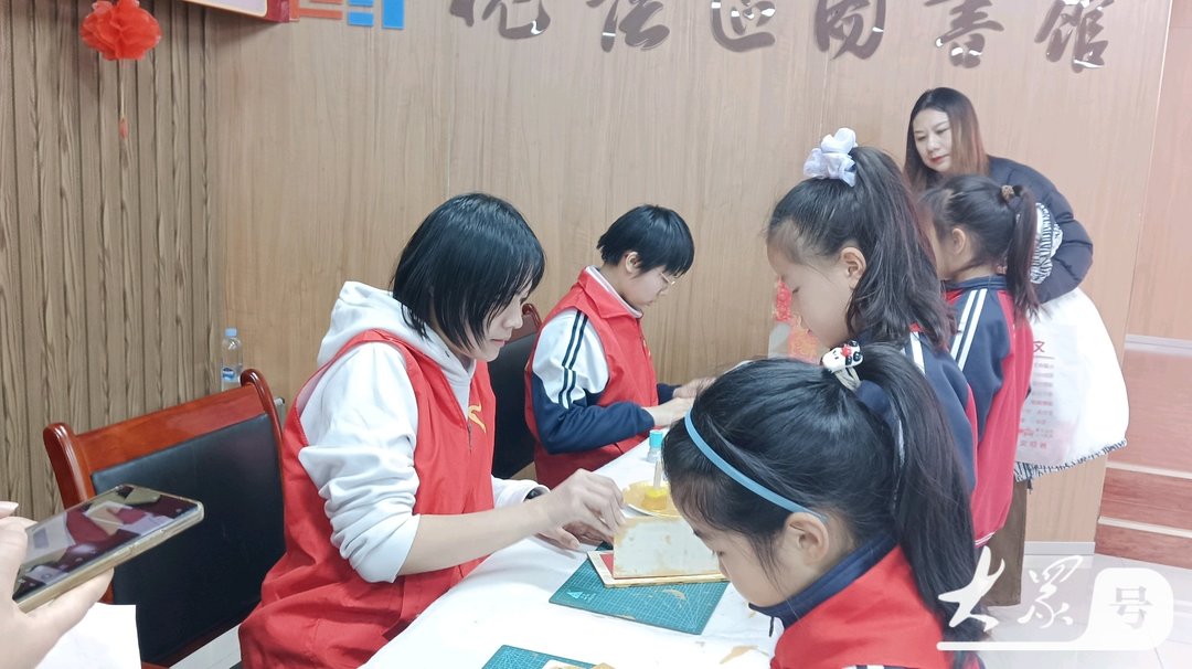 图为服务队队员在图书馆开展非遗活动。邹静怡 供图