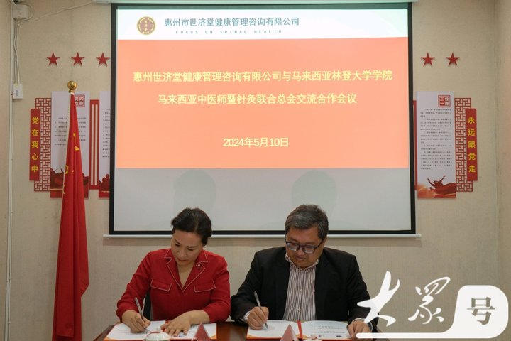 惠州市世济堂健康咨询有限公司分别与马来西亚中医师暨针灸联合总会和马来西亚林登大学分别签署了相关合作协议。