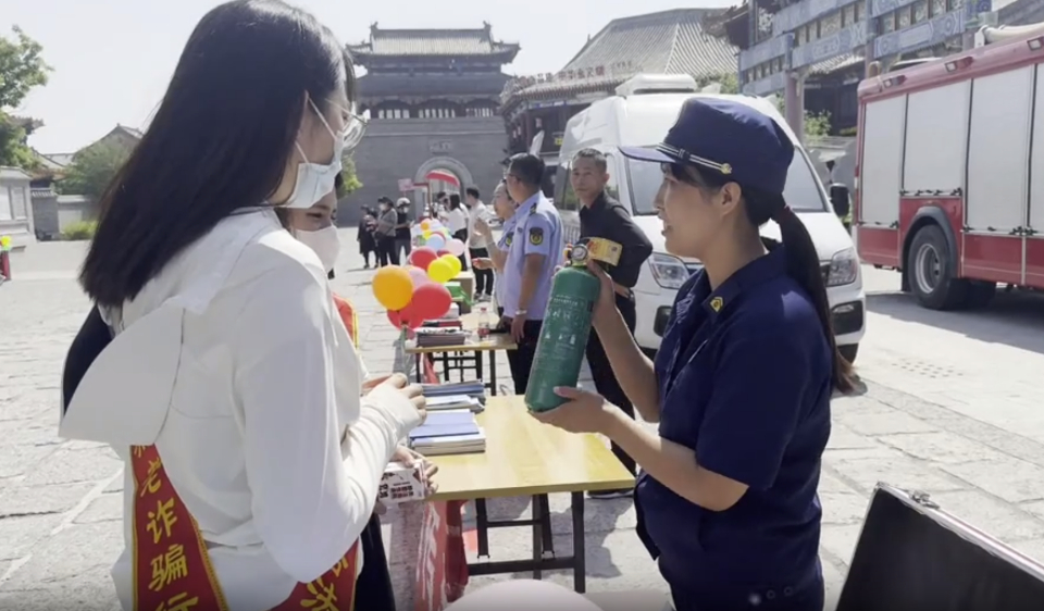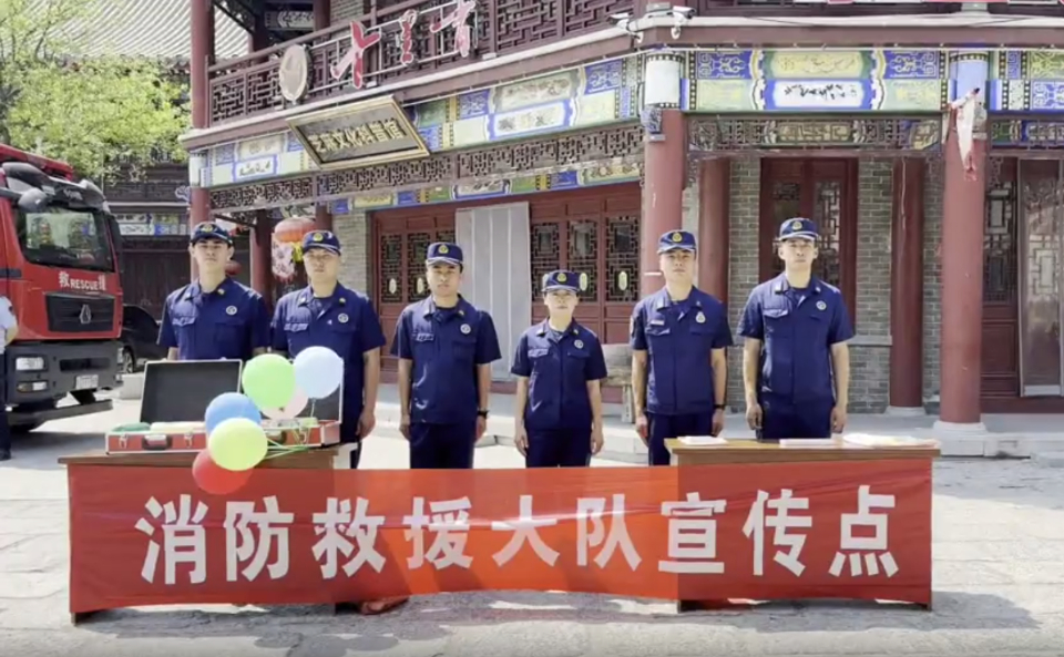 在全国第十六个防灾减灾日来临之际,山东滨州无棣县消防救援大队走进无棣县古城旅游景区“摆摊设点”开展消防宣传专项宣传活动,提高辖区群众消防安全素质。