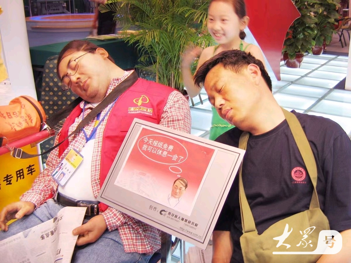 生活一瞥|《真假难辨》王平摄影03-22 09:41微信扫码扫码下载客户端2006年6月17日,在济南舜耕国际会展中心展会上,有一个正在“睡觉”的蜡像,一位参观者学着蜡像的动作“今天报纸免费,我可以休息一会了”都睡着了。 特别声明:本产品由大众新媒体大平台“大众号”号主上传发布,不代表平台观点和立场。