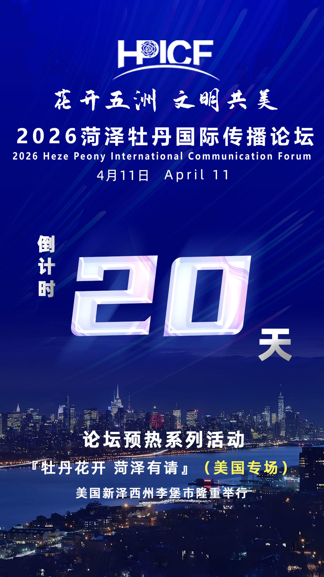 据悉,20天后,中国牡丹之都菏泽将以“花开五洲 文明共美”为主题,广邀全球各界人士于4月11日齐聚菏泽,共赏牡丹芳华,共绘文明交融的崭新蓝图。