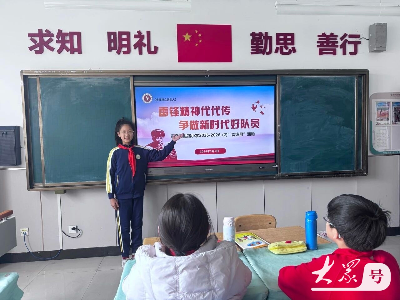 有的队员分享了雷锋同志本人冒雨送大娘回家、熬夜帮战友补袜子的经典故事,让大家直观感受到“雷锋就是做好事的人”;有的队员讲述了新时代榜样——社区志愿者阿姨,常年帮独居老人买菜、打扫卫生,用日复一日的陪伴延续雷锋精神;还有的队员分享了身边的榜样——班级里主动帮同学系鞋带、整理图书角的小伙伴,让大家明白“雷锋就在我们身边”。